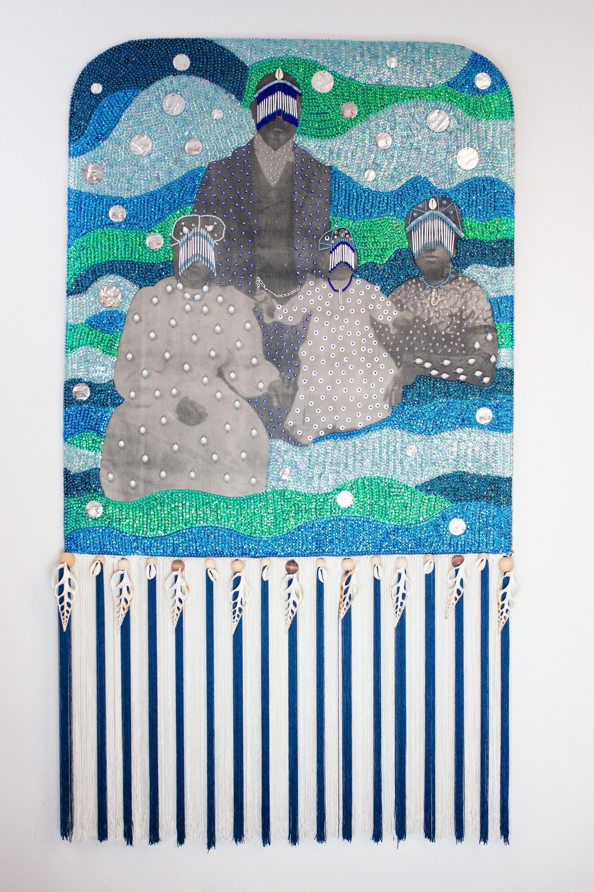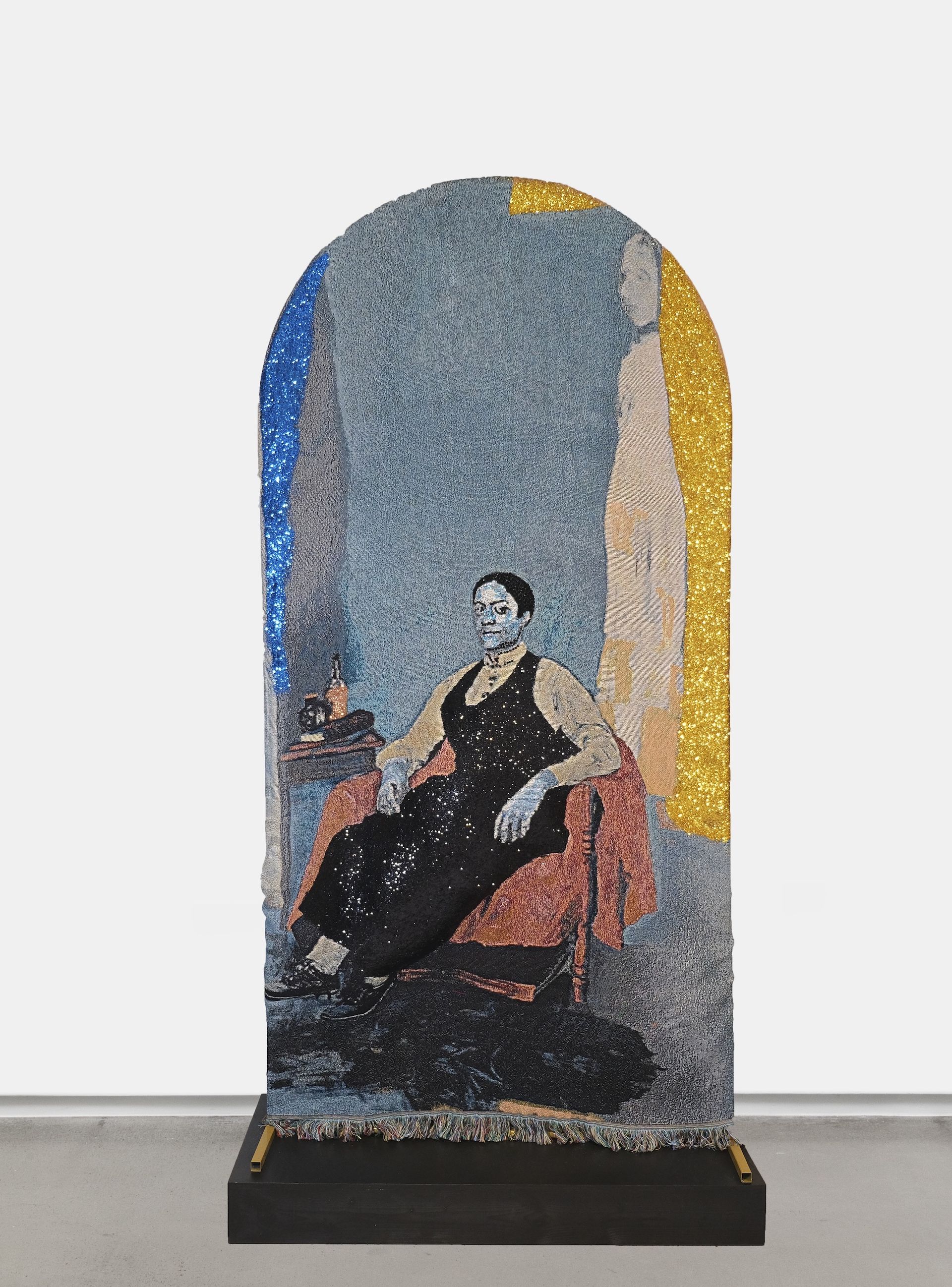 Brionne has captured Pleasant’s confident, regal bearing in a large-scale textile portrait of jacquard weaving embellished with glitter and rhinestones. Derricotte has recreated a dining table with a place setting of handmade glass, equal to what one might have experienced in one of Pleasant's boarding houses. It is accompanied by a sound installation with some of her known statements—including that Pleasant set the city's best table.