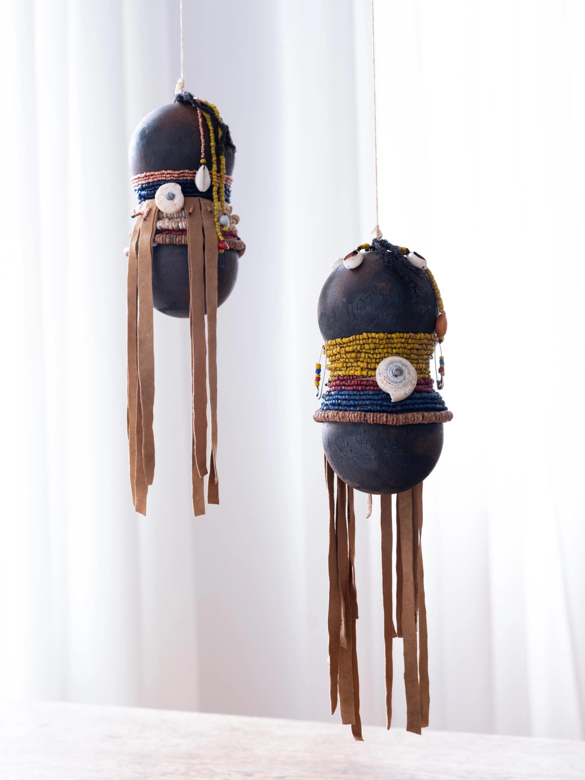 Mekondjo’s research delved into the erasure of ancestral cultural practices in Africa—another kind of extraction wrought by European colonialism. Her new installation, created in dialogue with the Museum of Ethnography in the nearby Swiss town of Neuchâtel, references ritual objects known as “crafted children” that Western missionaries, ethnographers and travellers removed from Namibia during the colonial era. Family members would fashion such dolls for young girls to augur the birth of their own children.