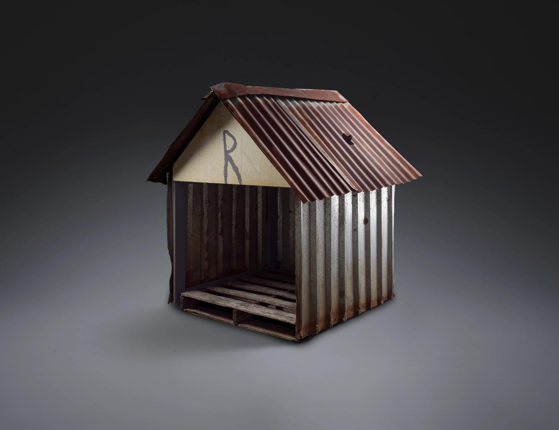 The kennel through which the ‘la Esmeralda’ Aguas Zarcas meteorite fell in 2019 in Costa Rica. The meteorite narrowly missed its occupant, a German Sheperd called Roky, and made a seven-inch hole in the roof. The kennel, along with the meteorite, is for sale at the Treasure House Fair with Art Ancient, priced at £450,000 for both
