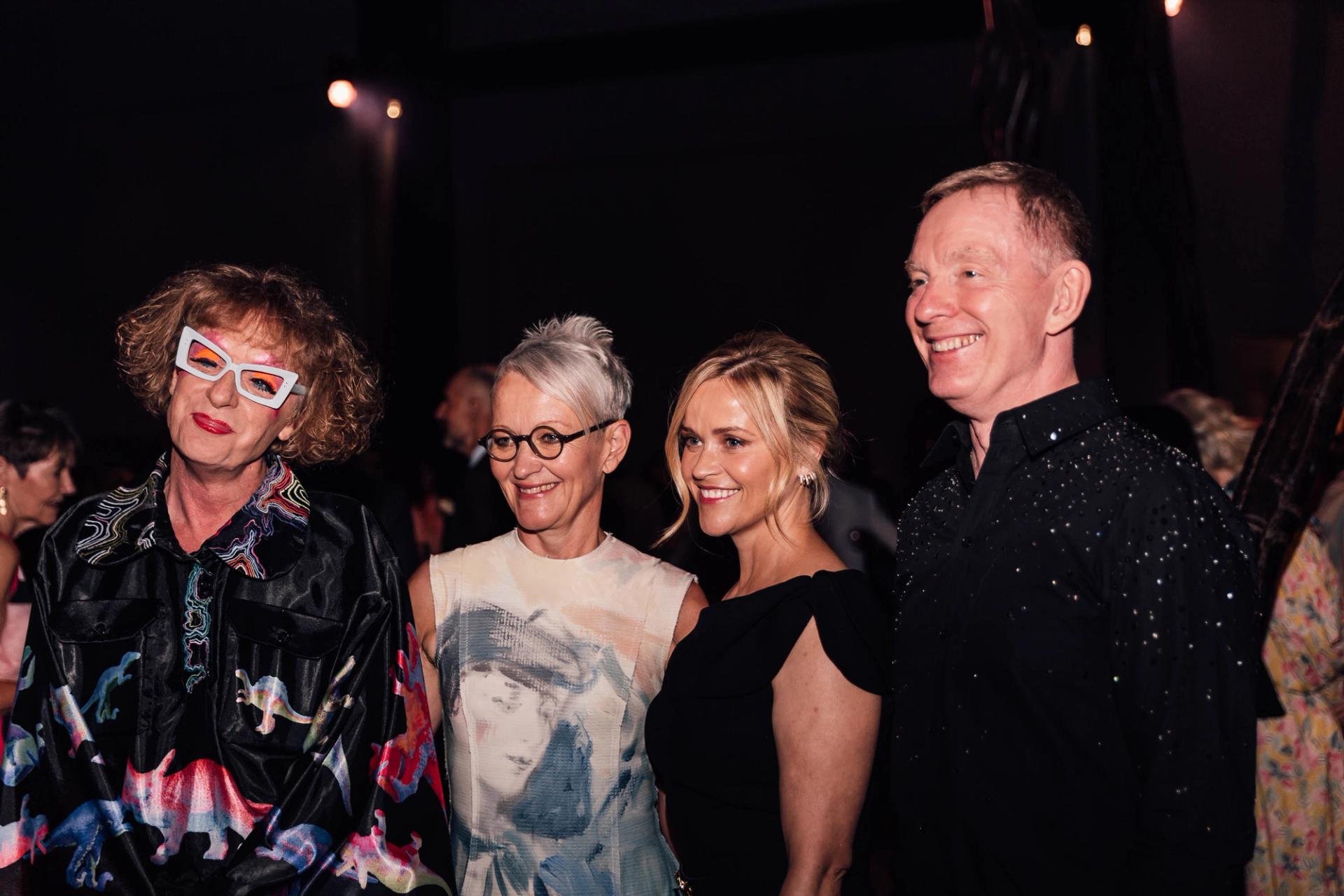 The artist Grayson Perry, Tate’s director Maria Balshaw and the actor Reese Witherspoon and the UK arts minister Chris Bryant at the fundraising gala to celebrate Tate Modern’s 25th anniversary