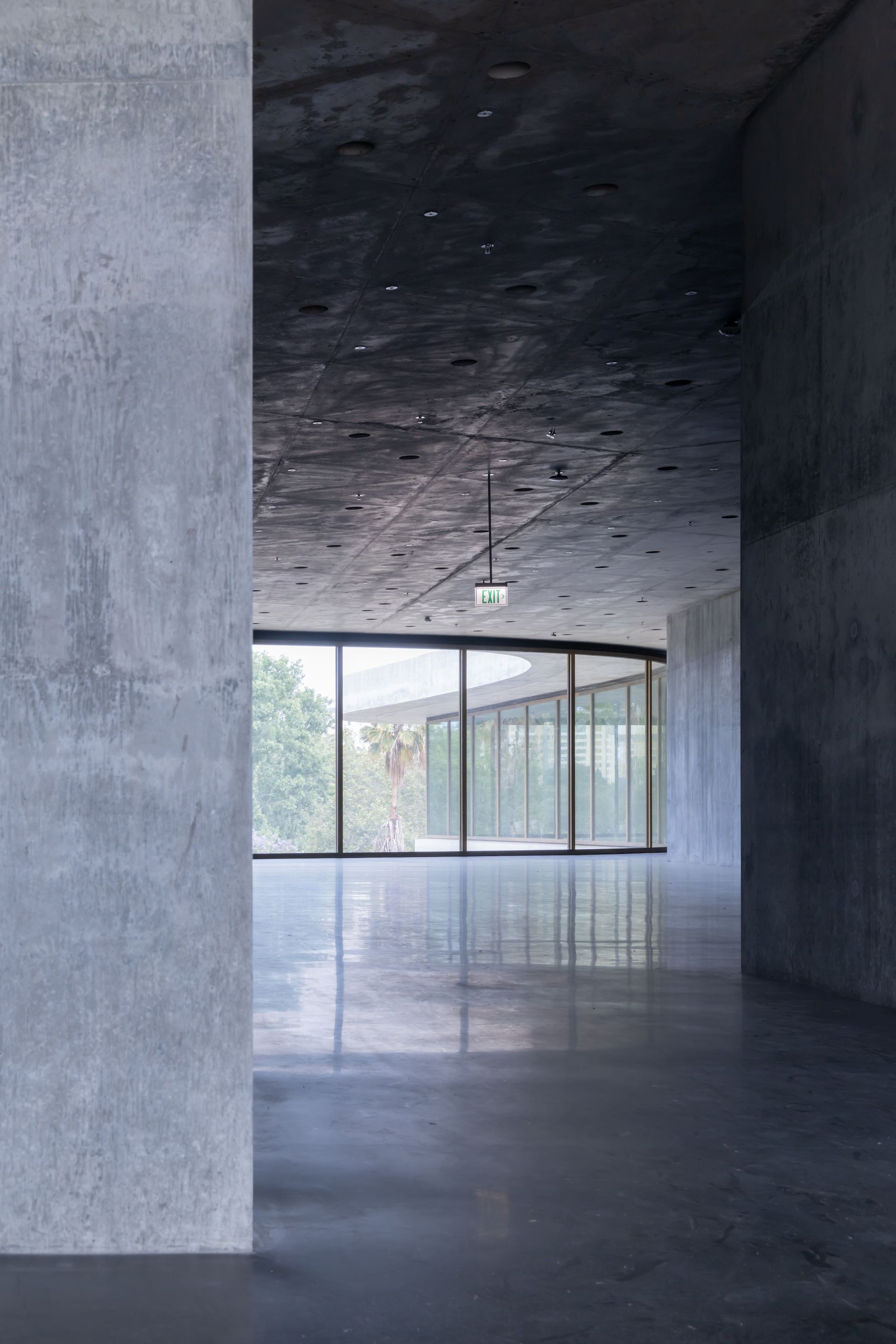 The elevated, amoeboid concrete structure, designed by the Swiss, Pritzker Prize-winning architect Peter Zumthor, stretches over Wilshire Boulevard. Its main, second floor features 110,000 sq. ft of gallery space, with currently open-plan walkways lined with floor-to-ceiling windows, flooding the space with natural light on all sides. At ground level, the building will hold a 300-seat theatre, education spaces, restaurants, a store and space for back-of-house functions.