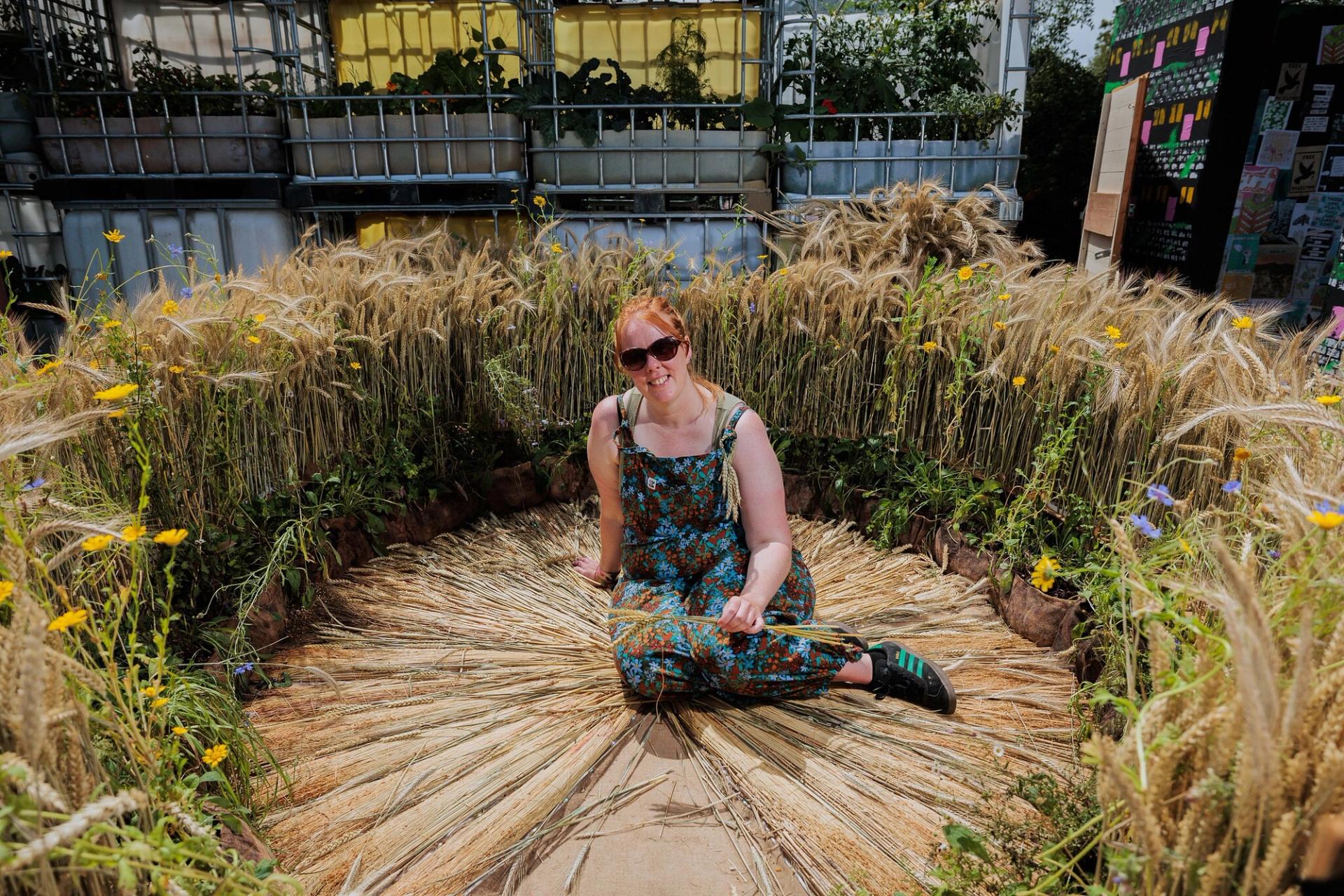 For her allotment, Coral Manton created a circle of wheat and wildflowers, inside which festival-goers could sit. The piece was inspired by the crop circles the artist-technologist used to make in Warwickshire—a practice she says holds different meanings for different people. “Some people do scientific experiments in them because they believe they have been created by aliens, other people meditate in them,” Manton says. “Crop circles are sometimes called temporary temples, and I love that element of contemplation. It’s as much about how people activate the spaces as the making of them.”
