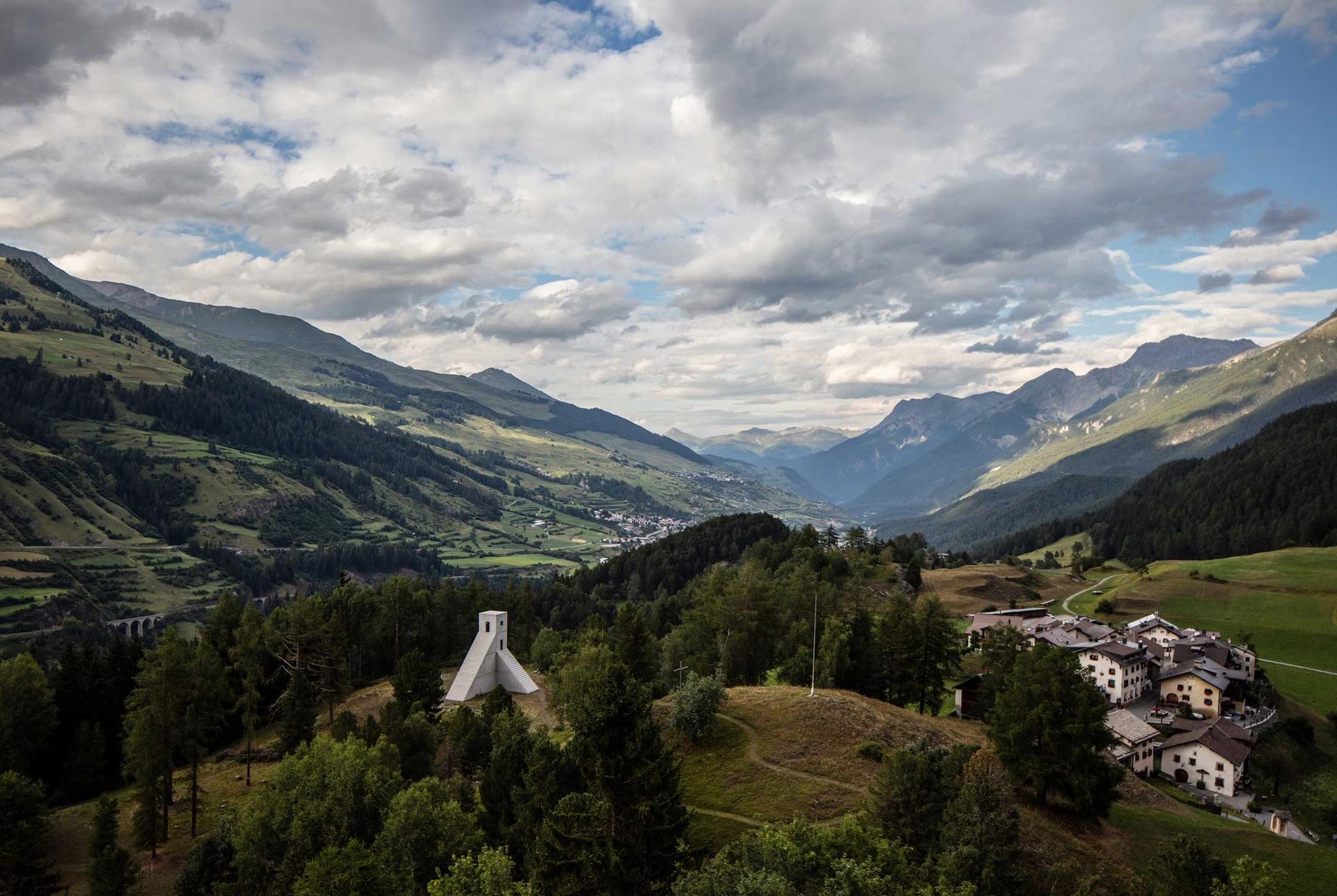 Not Vital's House to Watch the Sunset (2018) is installed in the landscape surrounding Schloss Tarasp