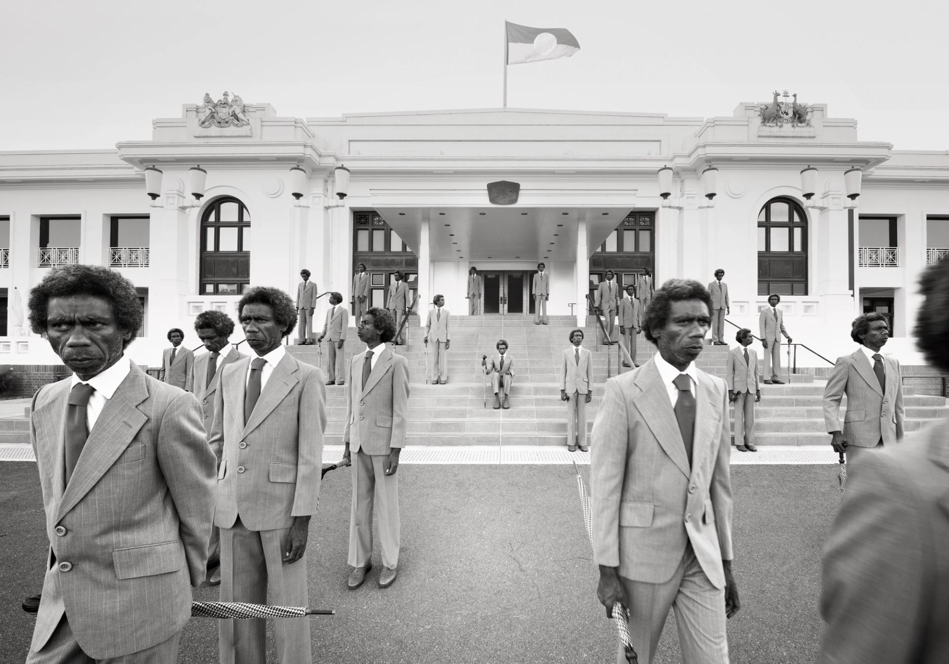 Despite being Australia’s original land owners, according to the Australian Human Rights commission, Indigenous people—encompassing both Aboriginal and Torres Strait Islander Peoples—currently account for less than 4% of the country’s population. In his series Majority Rule, the photographer Michael Cook, who is from the Bidjara Peoples, creates a world in which this statistic is inverted. His images of spaces, often tied to colonial rule, each feature the same Indigenous man, photographed many times over, raising confronting questions surrounding violence, assimilation and discrimination.