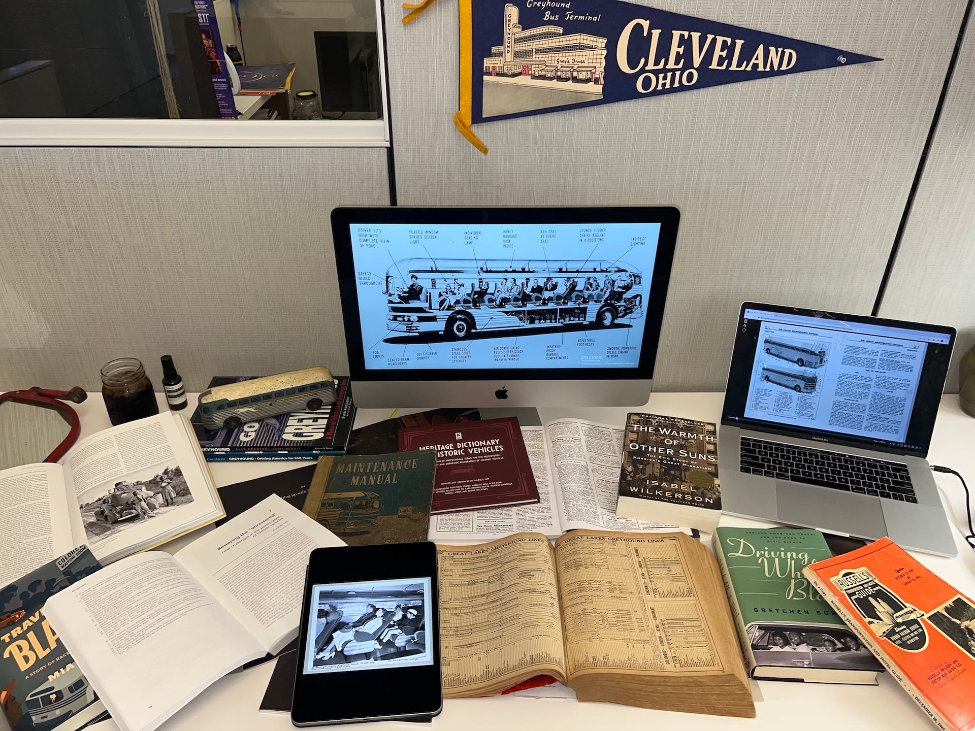 In Cleveland, Greyhound and Playhouse Square workers “are definitely looking out for the bus” when Edwards is not onsite, he says. Edwards is scouting for vintage seats and other vehicle parts aided by the Bus Boys Collection, a team of dealers and restorers in Minnesota. In the virtual-reality experiences that he is developing for bus visitors, video and audio will represent Jim Crow-era interactions among passengers and drivers.