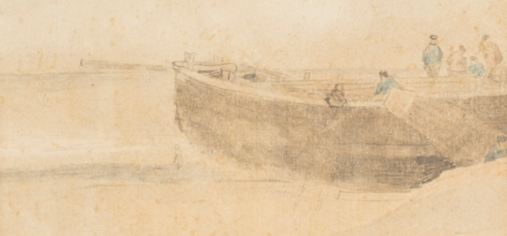 The watercolour depicts a woman with a shawl walking by a glade near The Hague, where Van Gogh lived for nearly two years. On the reverse is a depiction of a fishing boat on the beach at the nearby coastal town of Scheveningen. Also painted in watercolour, the sketchy Boat on the Beach with Figures (September-October 1882) appears to be unfinished. This seascape is not recorded in the 1996 Hulsker Van Gogh catalogue raisonné and we are publishing it in colour for the first time.