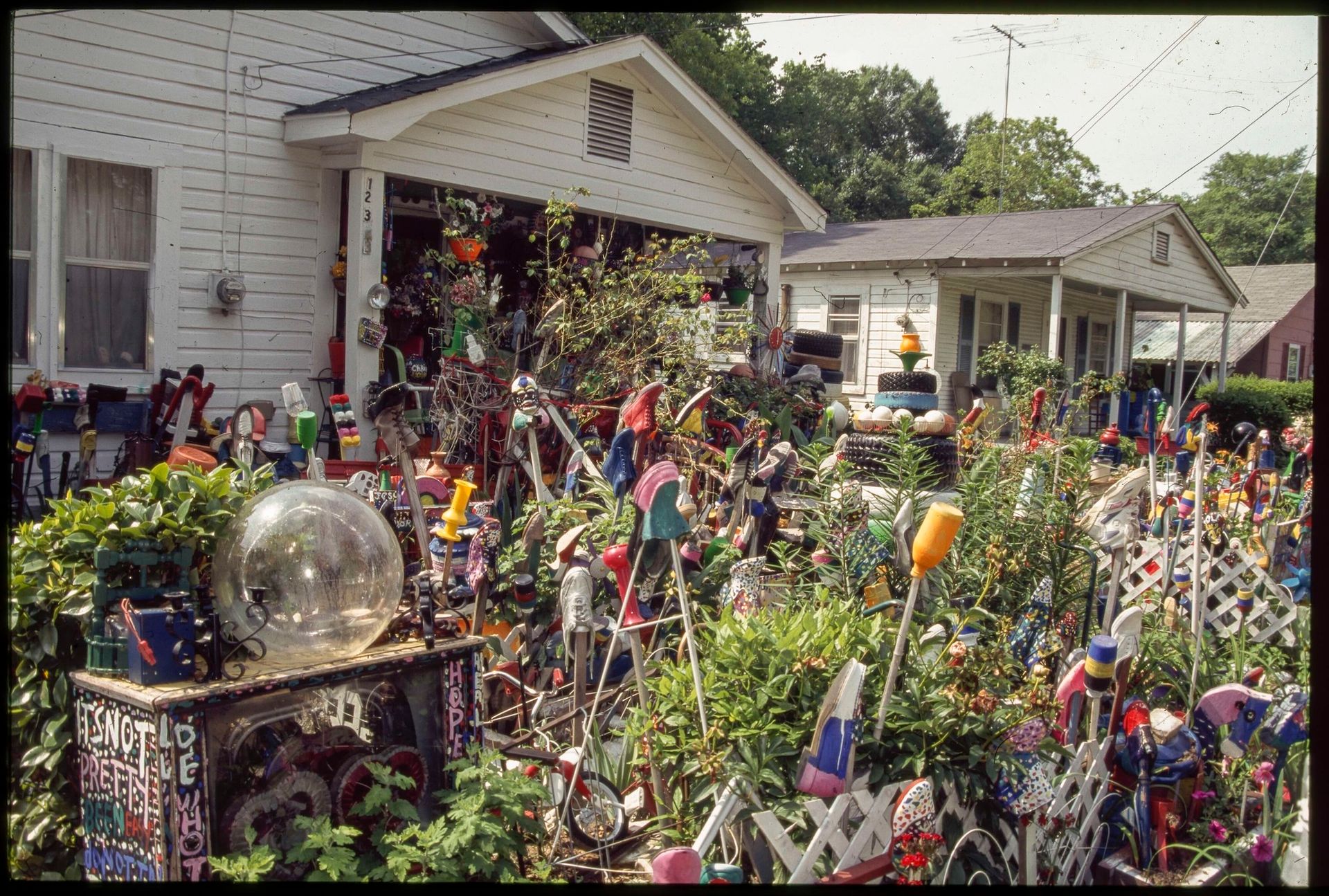 L.V. Hull’s continually evolving art environment, created from found objects she adorned and carefully placed in her yard Photo: Bill Arnett, 1997