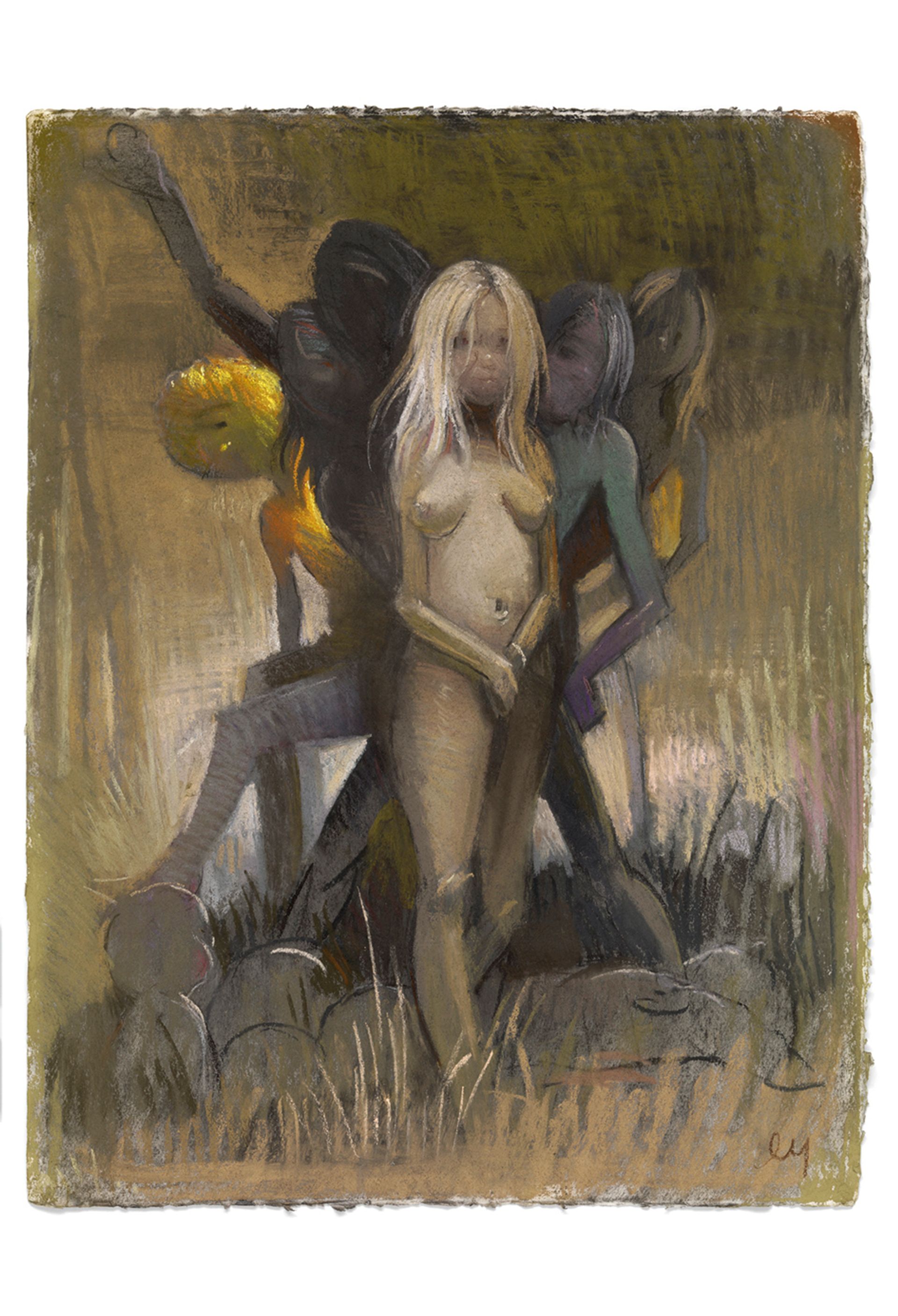 Lisa Yuskavage’s Hippies (2013) is featured in the artist’s first-ever museum exhibition of drawings, at the Morgan
