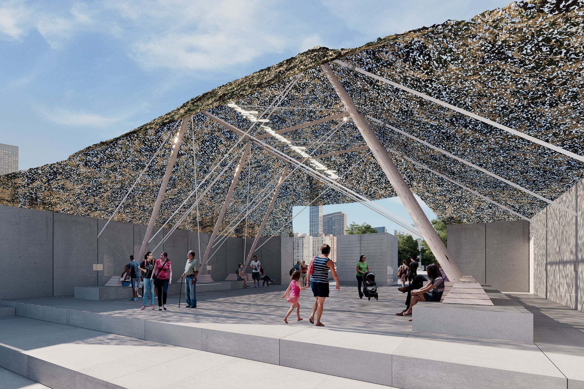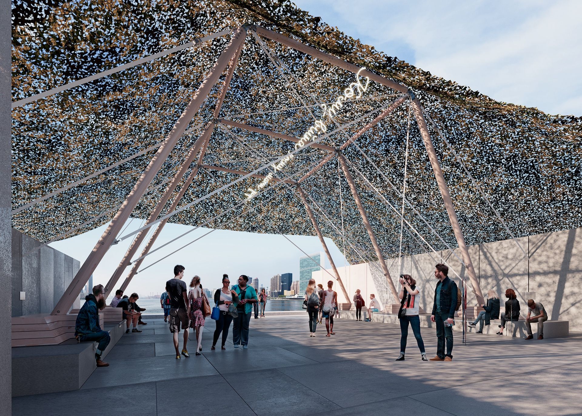 Camouflage marks the launch of Art X Freedom, the Four Freedoms Park Conservancy's new annual commissioning programme of public art intended to inspire conversation around issues of social justice. “Let’s try to add the power of public art at a park, close to the UN, that’s dedicated to government for the good,” says Howard Axel, the conservancy's chief executive, who is interested in compelling more people to make the short pilgrimage to the 3.5-acre park.