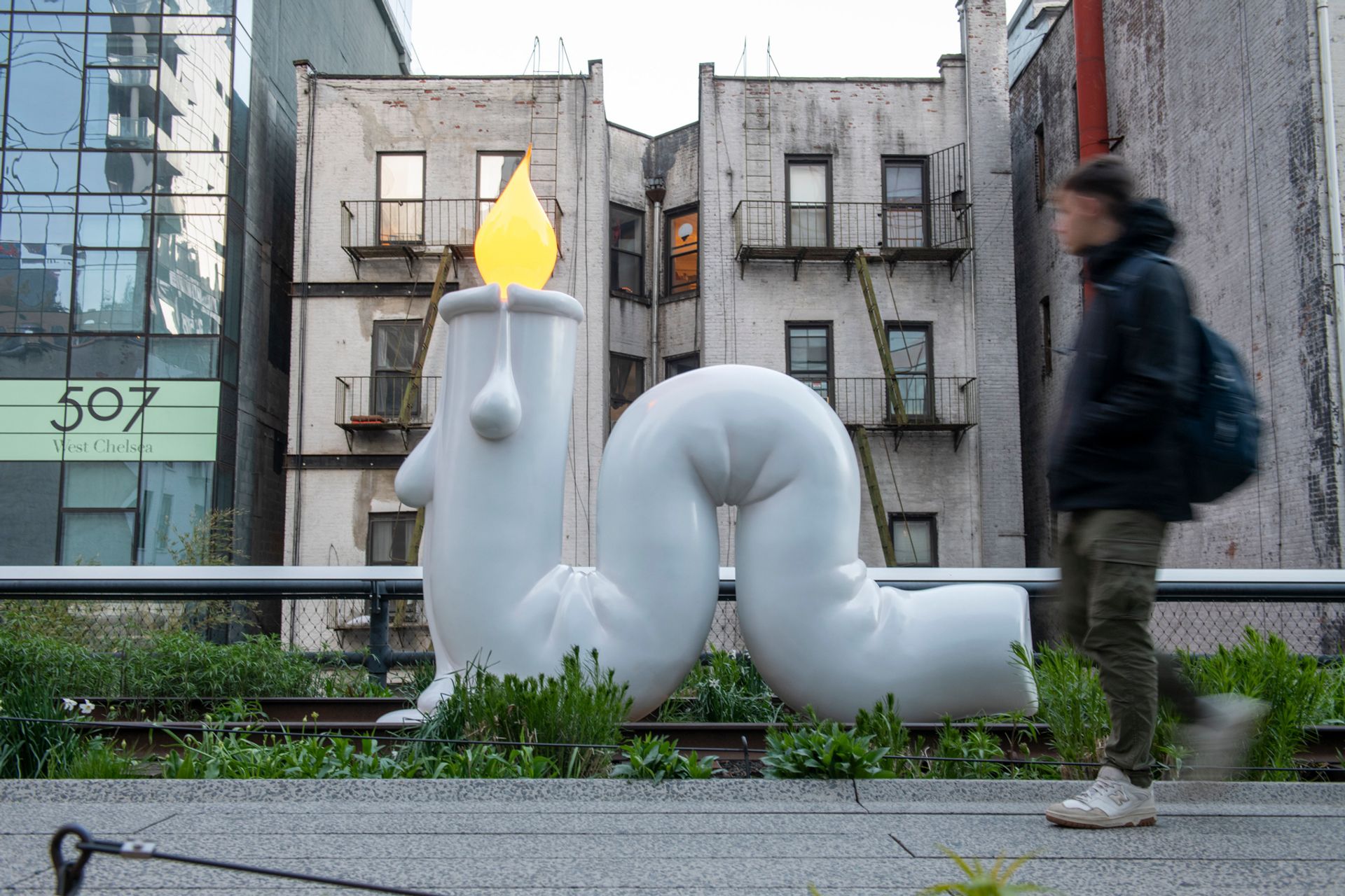 Light it up: the British artist Tai Shani installed three large sculptures of cartoon-like candles, collectively titled The Sun Is a Flame That Haunts The Night, along the High Line Photo: Timothy Schenck; courtesy of the High Line