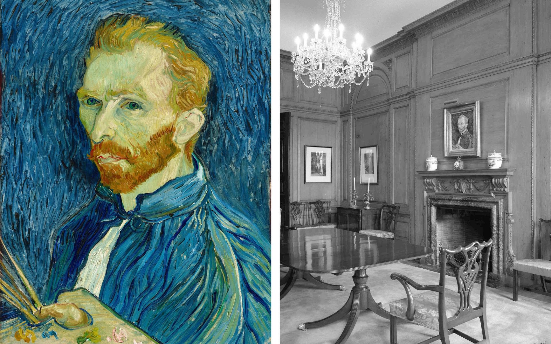 As this little-known photograph shows, the Van Gogh hung for a few years above the mantelpiece in the ante-room, which leads to the dining room. John Hay Whitney, the ambassador to the UK in 1957-61, had it in his personal collection. He died in 1982 and in 1998 his widow Betsy bequeathed the self-portrait to the National Gallery of Art in Washington, DC.