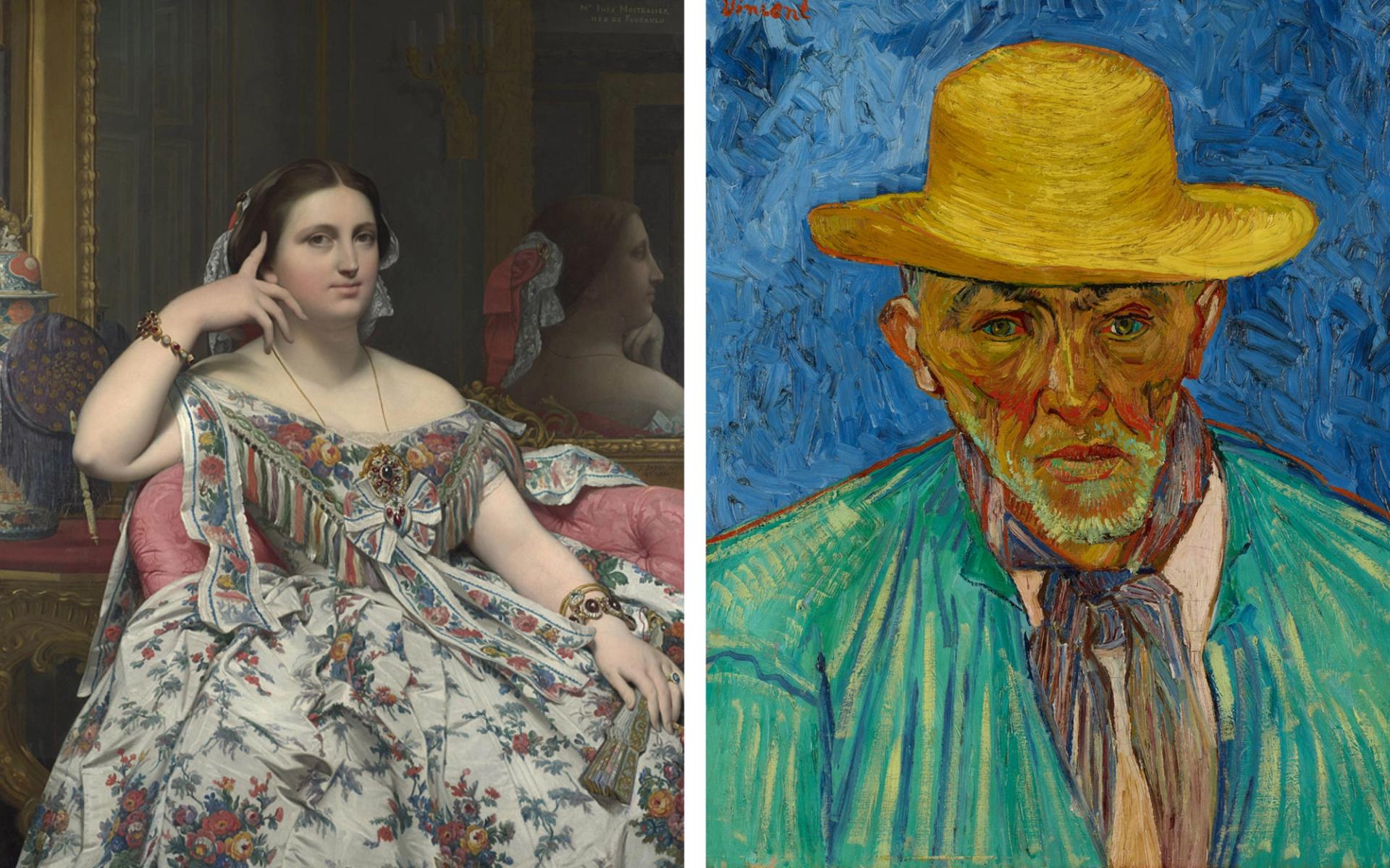 Jean-Auguste-Dominique Ingres’ Madame Moitessier (1856) and Van Gogh’s Portrait of a Peasant (Patience Escalier) (August 1888)