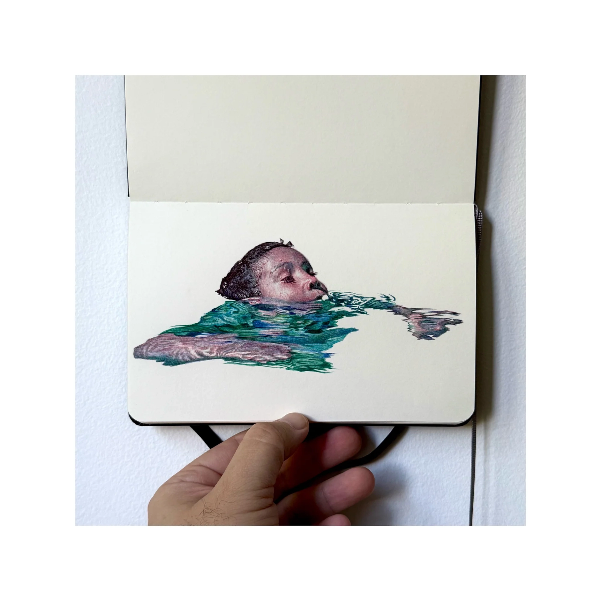 “I went to the New York Academy of Art, and my commute from my apartment to school was 40 minutes, so I sketched to pass the time,” he tells The Art Newspaper. “I started using that technique for commission work, and I would always do them in my sketchbooks and post my pages online, and then it just turned into people saying, 'Hey, how do I have that though?' People wanted to buy the whole sketchbook, but there's notes and phone numbers and doctor's appointments and social security numbers in there! So now I’m thinking of the sketchbook as just another way to matte and frame a drawing. It’s one drawing per sketchbook, framed. I kept it in the sketchbooks because it connects people to what they see online, and I wanted to offer a piece of my studio practice”.