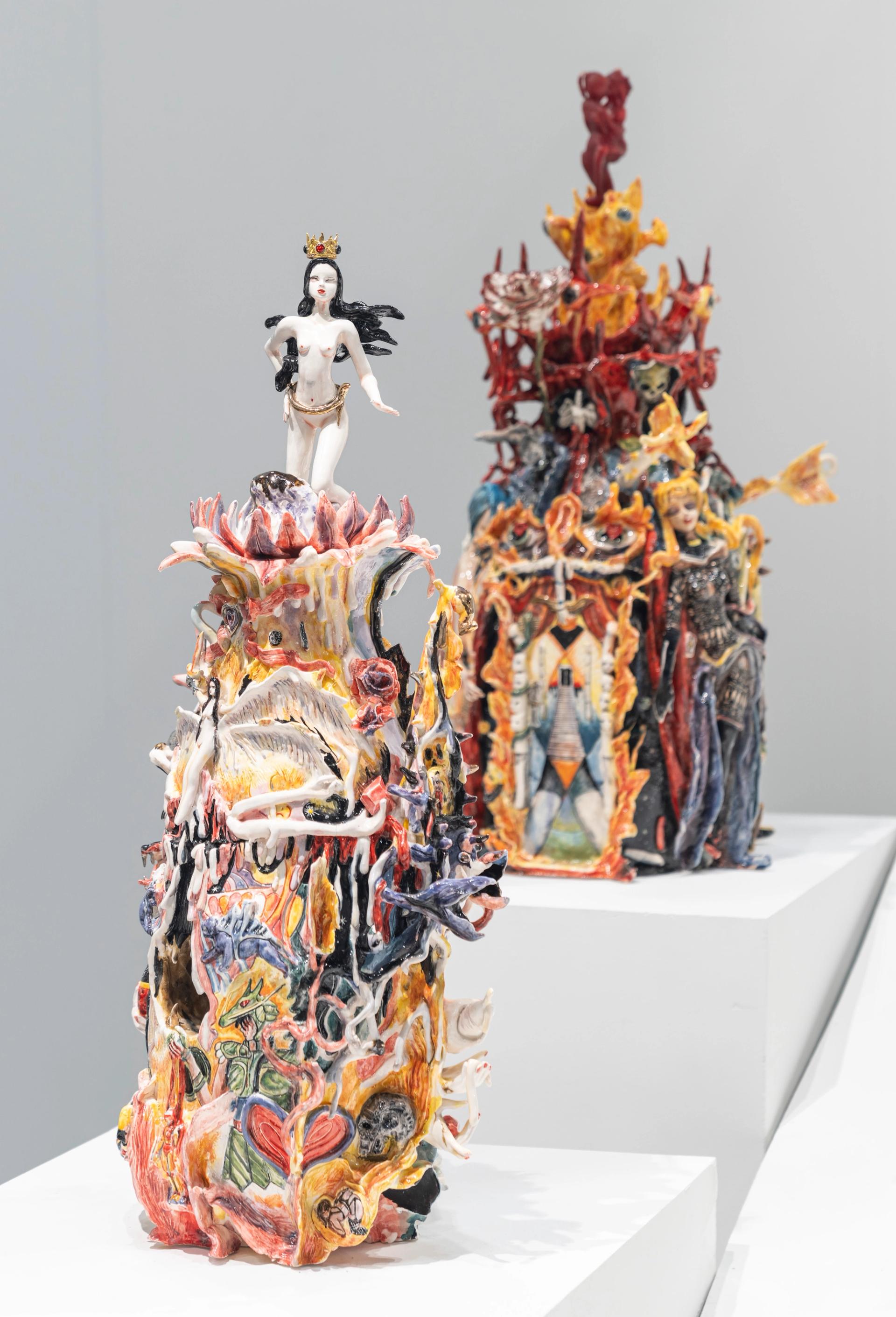 Two of Alejandro García Contreras' ceramic works at Swivel Gallery's stand. Courtesy Swivel Gallery