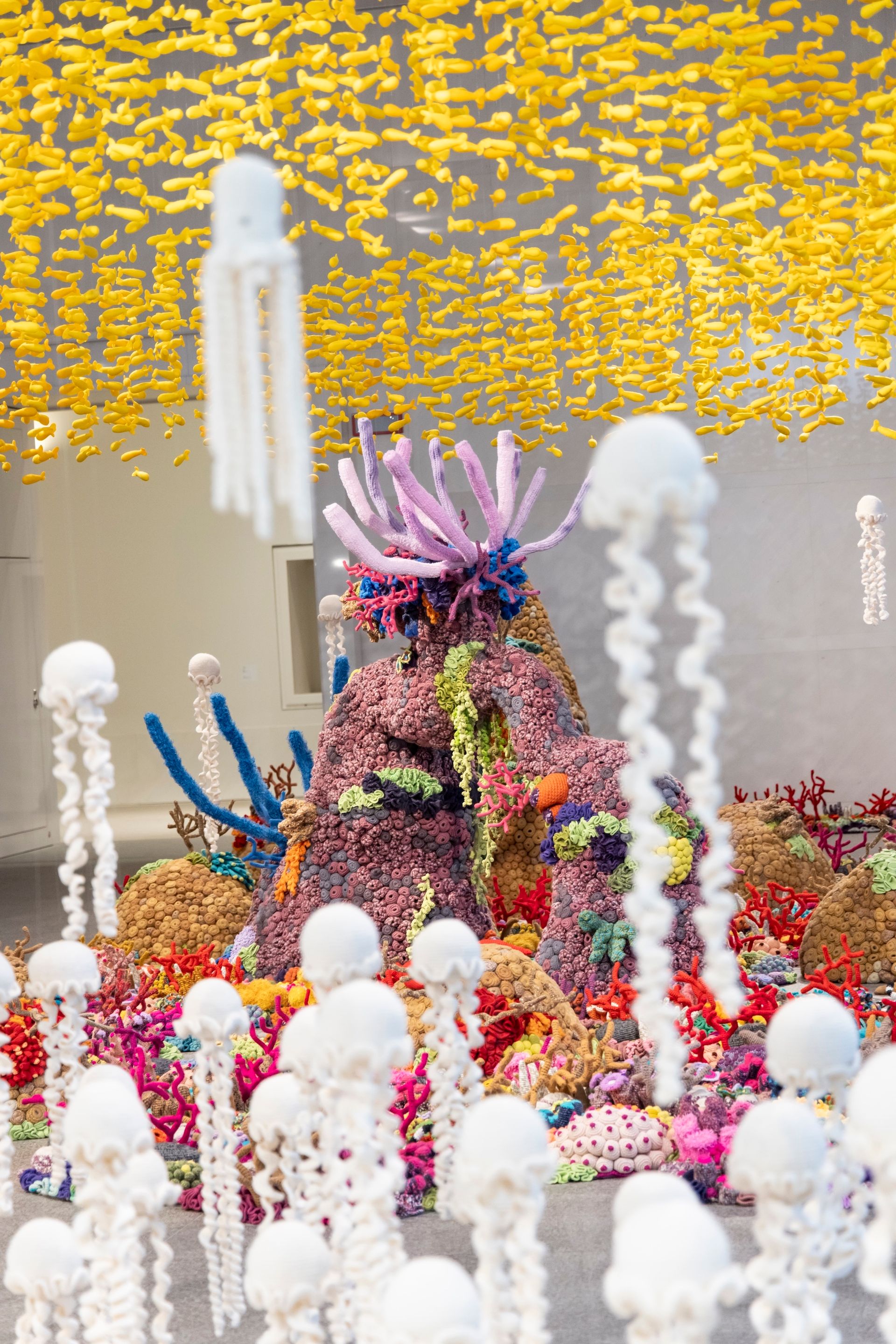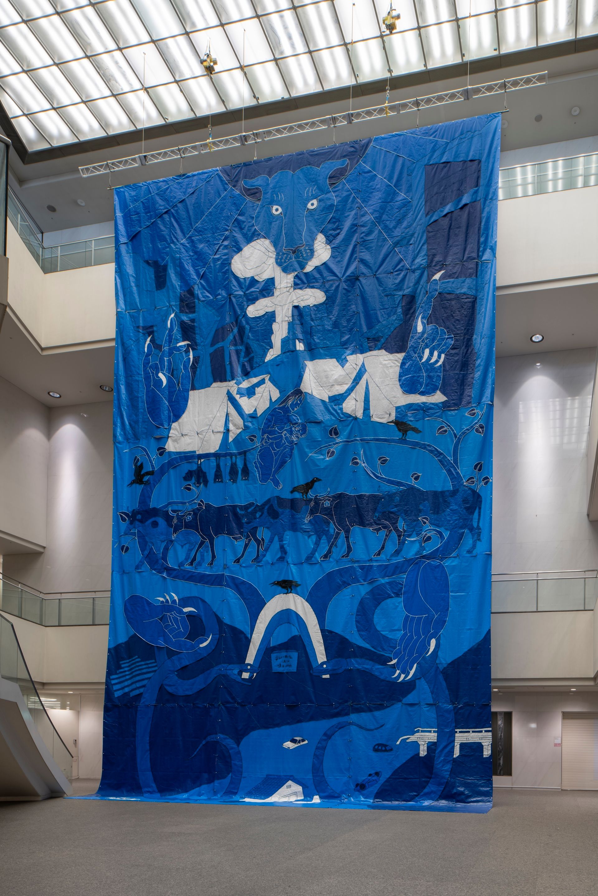 Installation view at Aichi Triennale 2025, Kubo Hiroko, The Lion with Four Blue Hands, 2025 ©︎ Aichi Triennale Organizing Committee. Photo: ToLoLo studio