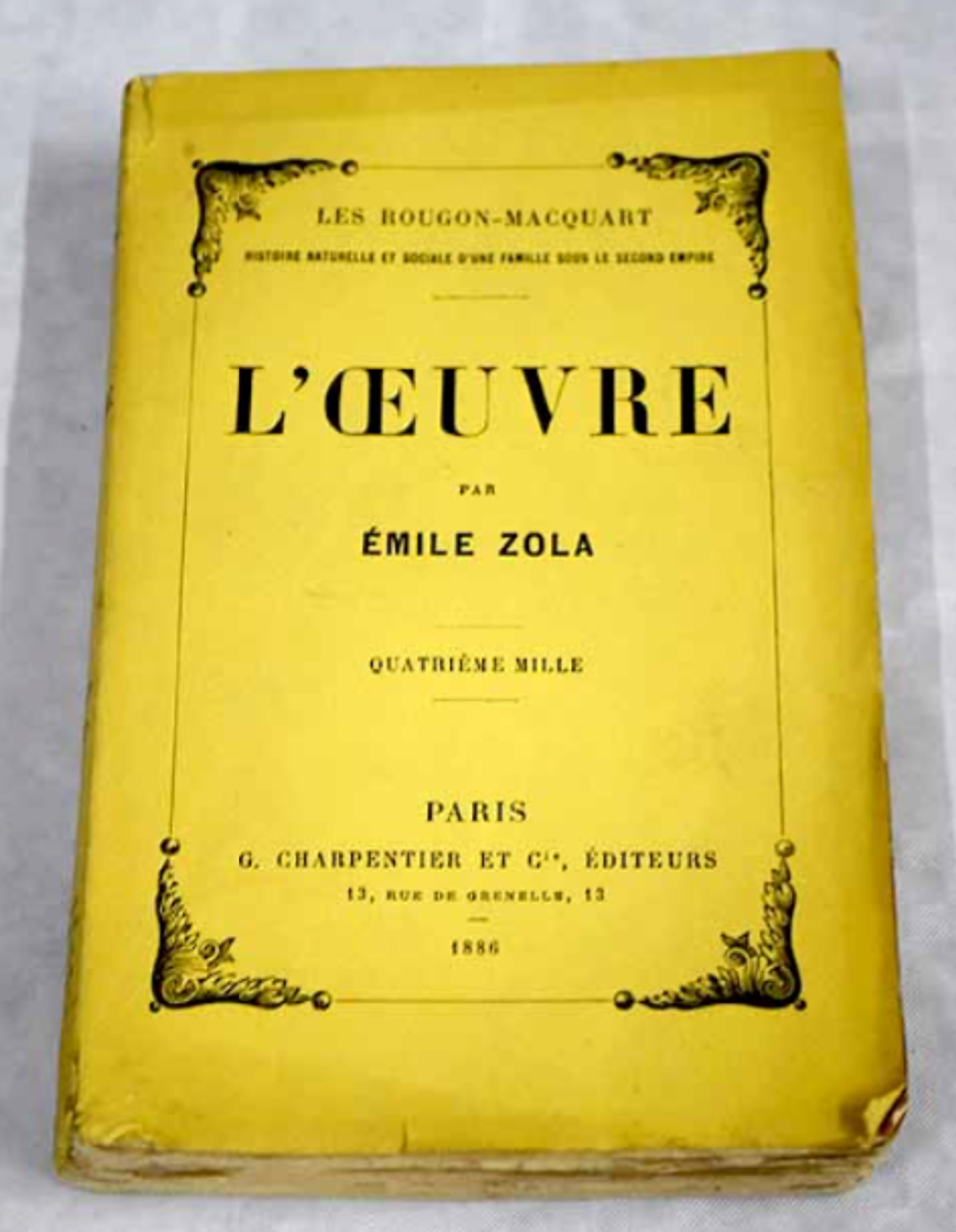 Emile Zola’s L’Oeuvre, published by Georges Charpentier (1886), with its yellow cover. Van Gogh described being left “touched” by the novel, which is about an artist