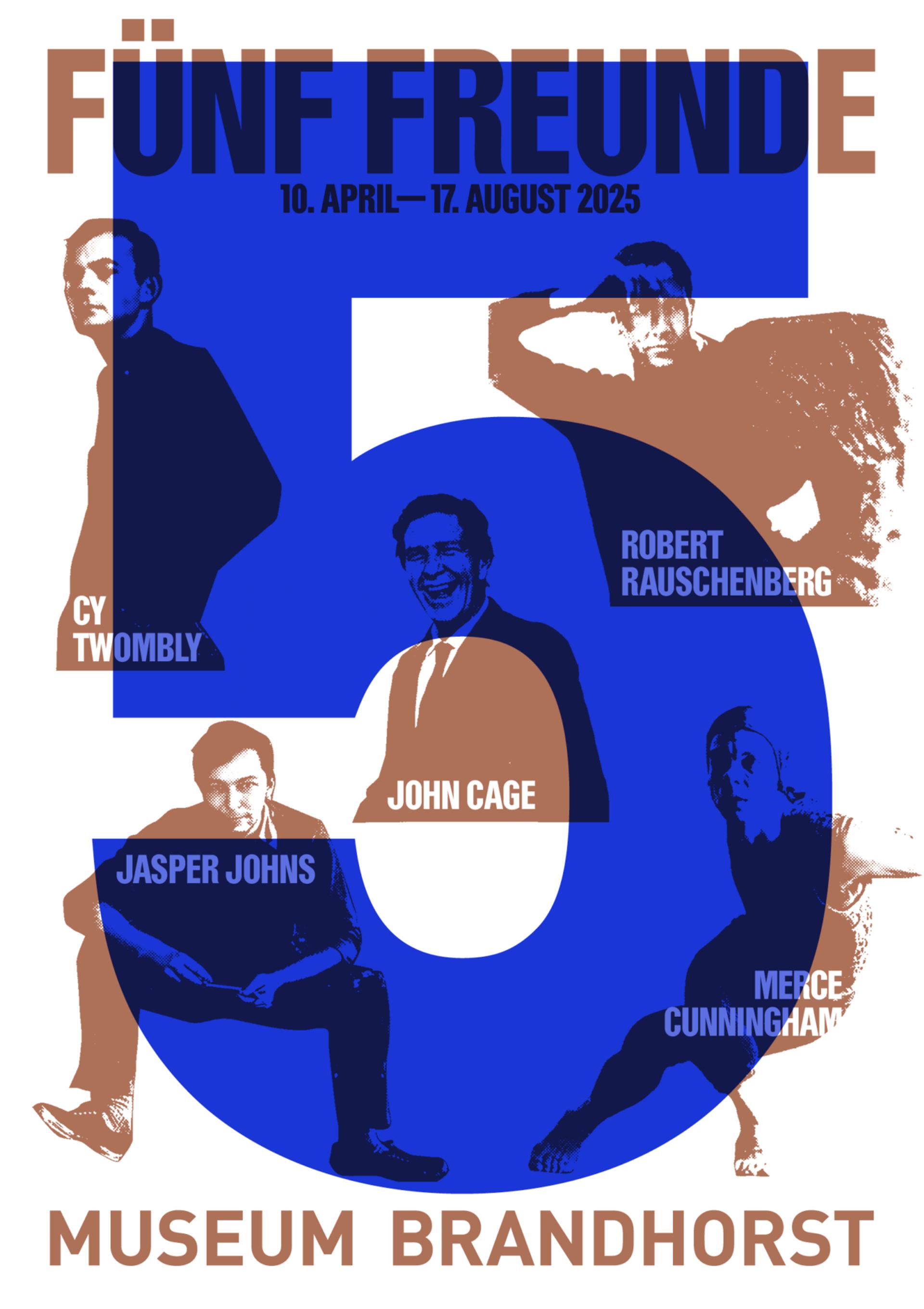 The poster for the exhibition Five Friends: John Cage, Merce Cunningham, Jasper Johns, Robert Rauschenberg, Cy Twombly