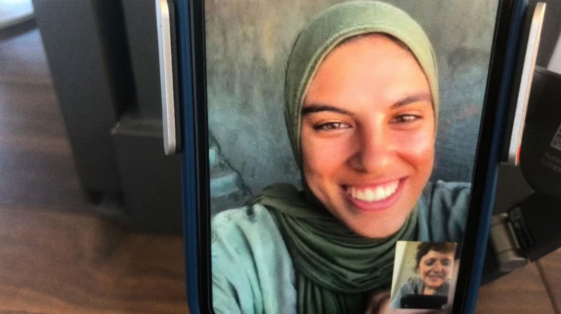 Hassouna has a magnetic presence, with straight white teeth often bared in an anxious smile, even as our perception of her is occluded by the raspy audio and laggy pixels that represent the obstacles between the West and Gaza: a physical blockade, degrading communications infrastructure, selective media narratives. Hassouna calls from home, a friend’s house, a shelter, a rooftop—wherever she can get a charge and a signal. The dialogue proceeds in fits and starts, interrupted by sound that glitches, video that cuts out, calls that drop, devices that sometimes rattle with the sudden percussion of Israeli bombs. Hassouna and Farsi, an Iranian-born French filmmaker, speak together in English. The film spans a year almost exactly to the day, from April 2024 to April 2025, and reminds the viewer of the timeline of the current conflict’s first year: the false hope of a ceasefire, the blocked aid, the destroyed hospitals, the assault on Rafah, the rising spectre of starvation.