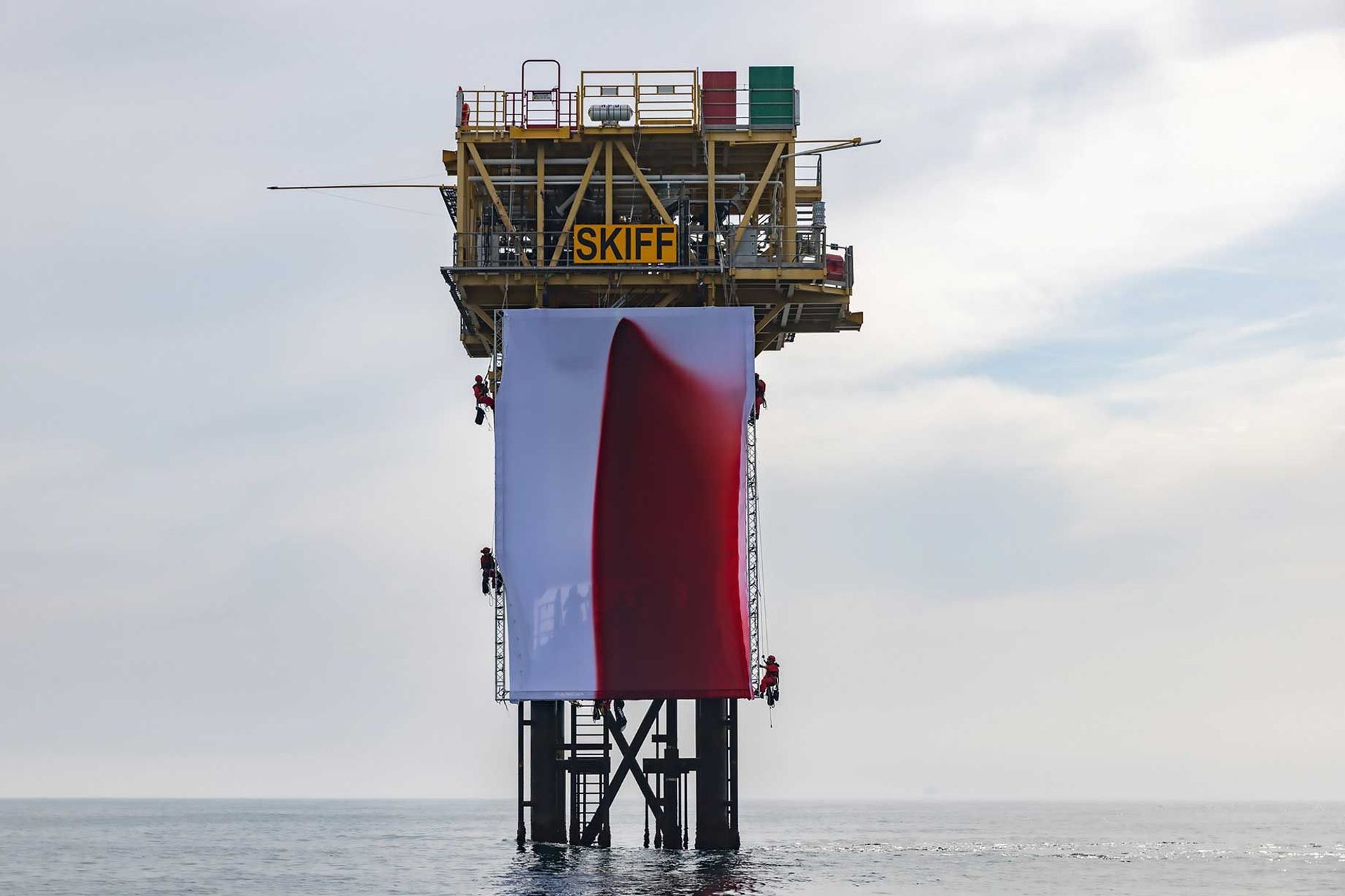 Making a point: Greenpeace climbers installed Anish Kapoor’s 96 sq. m artwork Butchered onto a Shell oil rig in the North Sea in August