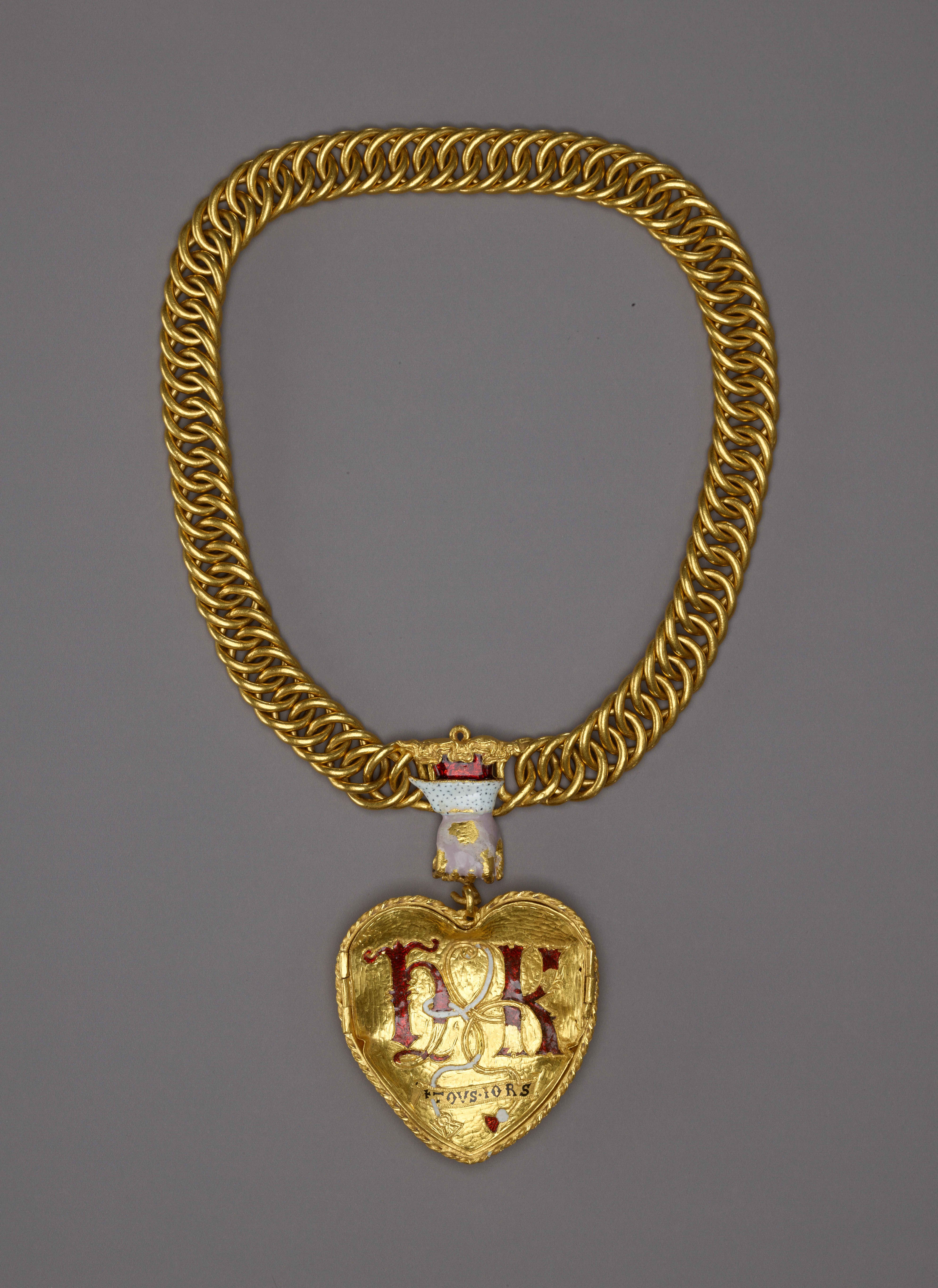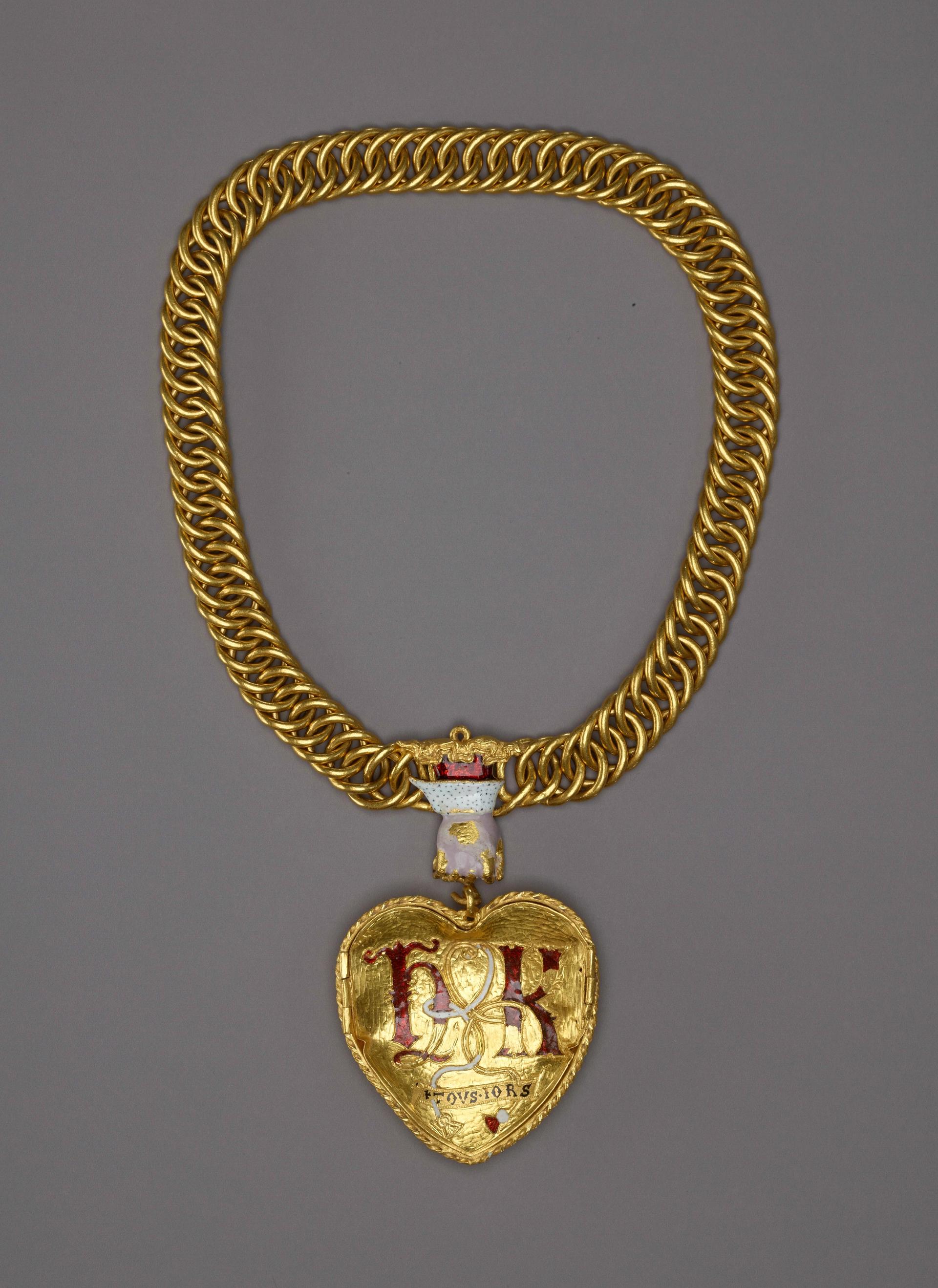 The Tudor Heart, as it has become known, was discovered by the amateur metal detectorist Charlie Clarke in 2019, in a field in Warwickshire—and reported under the Treasure Act 1996, which gives museums “first dibs” on potential treasures. One side of the pendant is decorated with an image of a Tudor rose intertwined with a pomegranate tree, symbols relating to Henry and Katherine respectively; the other features the letters “H” and “K”, bound together with white thread. At the bottom of each face is the word tousiors, or “always” in old French.