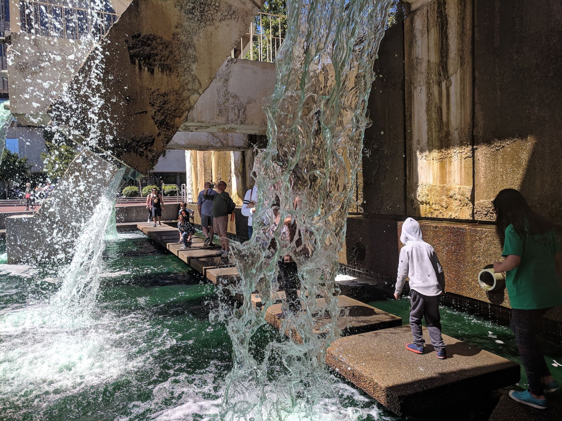 (Justin Herman Plaza is the previous name of Embarcadero Plaza, in which Vaillancourt Fountain is the most prominent feature. Herman was the executive director of the San Francisco Redevelopment Agency from 1959 to 1971, but his ‘urban renewal’ projects resulted in the destruction of historic buildings as well as the displacement of thousands of residents, many of whom were people of colour. The plaza’s name was changed in 2017 after a petition collected more than 14,000 signatures.)