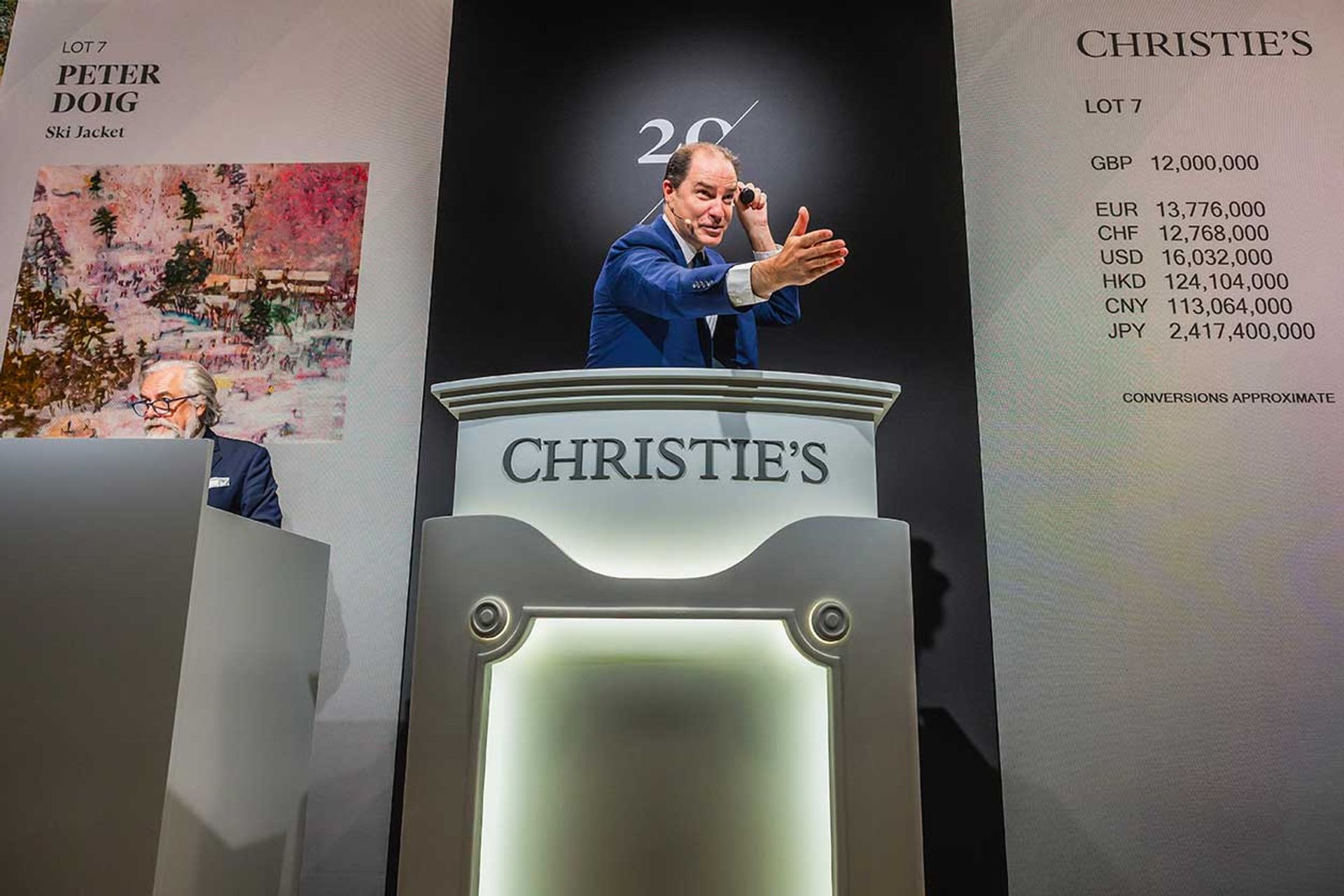 Its headline lot was Peter Doig’s Ski Jacket (1994), which soared over its £6m-£8m estimate to make a stunning £14.2m after an epic—and excruciatingly slow—14-minute battle between the Hong Kong-based Eric Chang of Christie’s Asia and the final buyer in the room, the former Christie’s chairman Francis Outred, now an art dealer.