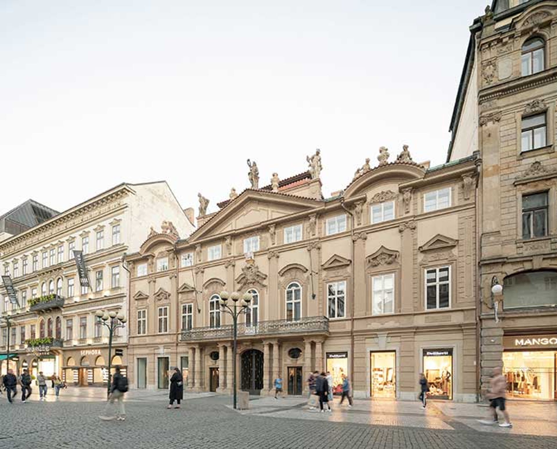 The mixed-use development, which Crestyl envisages as “a new public space” for Prague, would expand across an extensive site behind the 18th-century Savarin Palace, with one of four entrances opening onto the city’s historic Wenceslas Square.