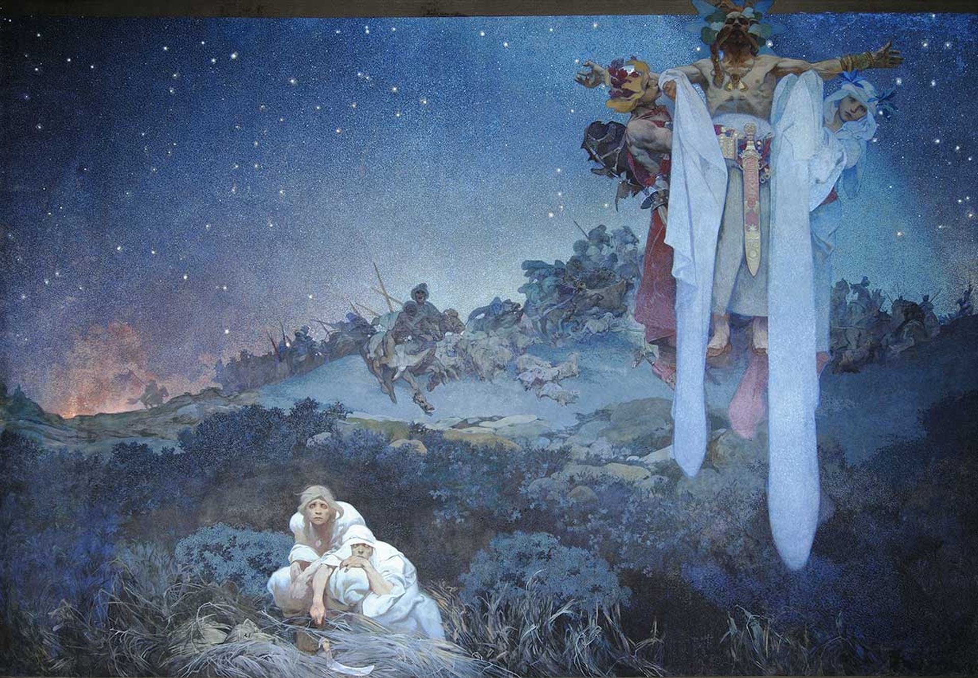 Completed in 1928, Alphonse Mucha’s Slav Epic is a monumental series of 20 paintings depicting a mythologised Slavic history, with the largest canvases more than eight metres wide. Supported in creating the work by the US businessman and diplomat Charles Crane, Mucha gave the series to Prague, on condition that the city authorities built a dedicated exhibition space to house it.