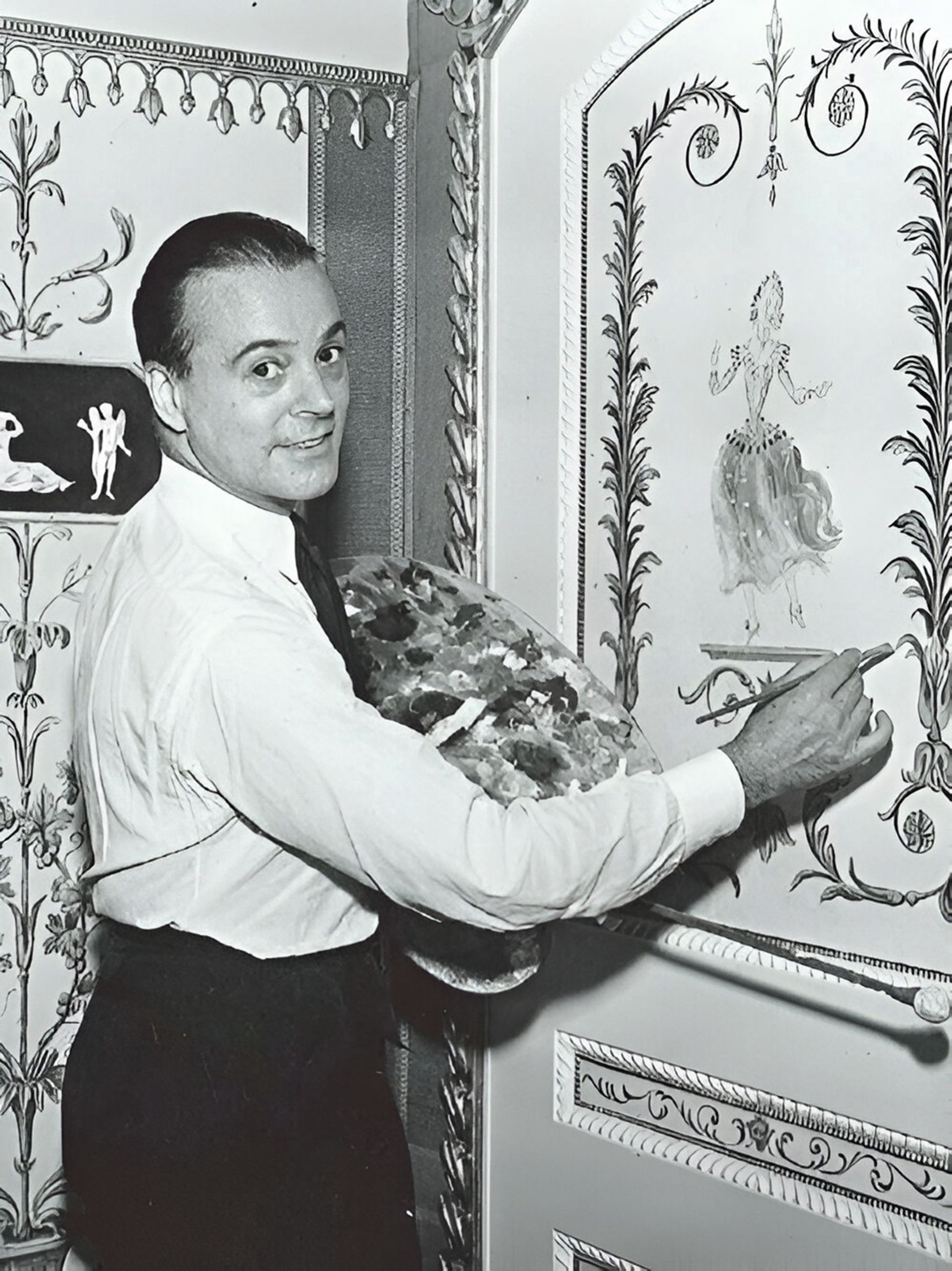 Oliver Messel working at The Dorchester in 1952 and features of the renovated suite Courtesy of The Dorchester