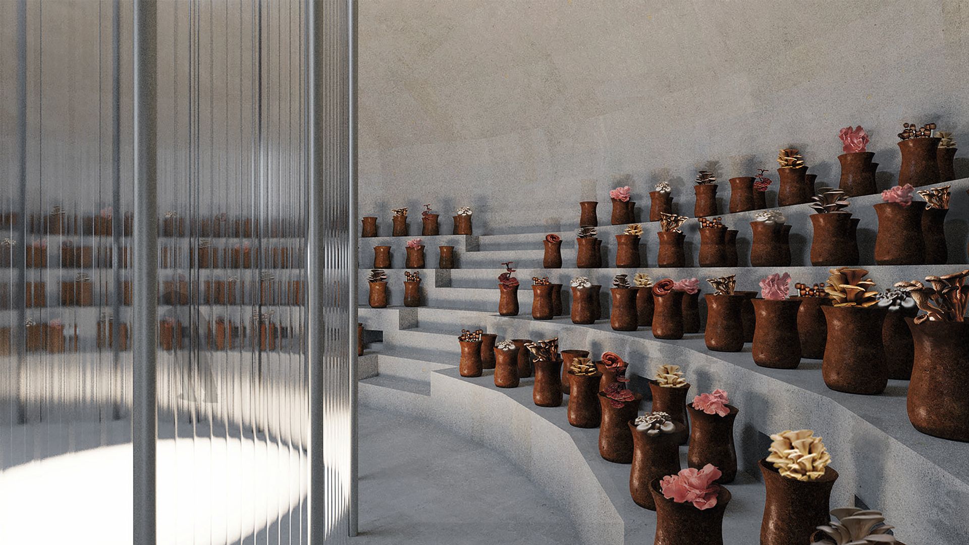 The “fruiting room” in a mushroom-shaped building that Shigematsu recently designed for the Casa Wabi campus in Mexico Courtesy of OMA