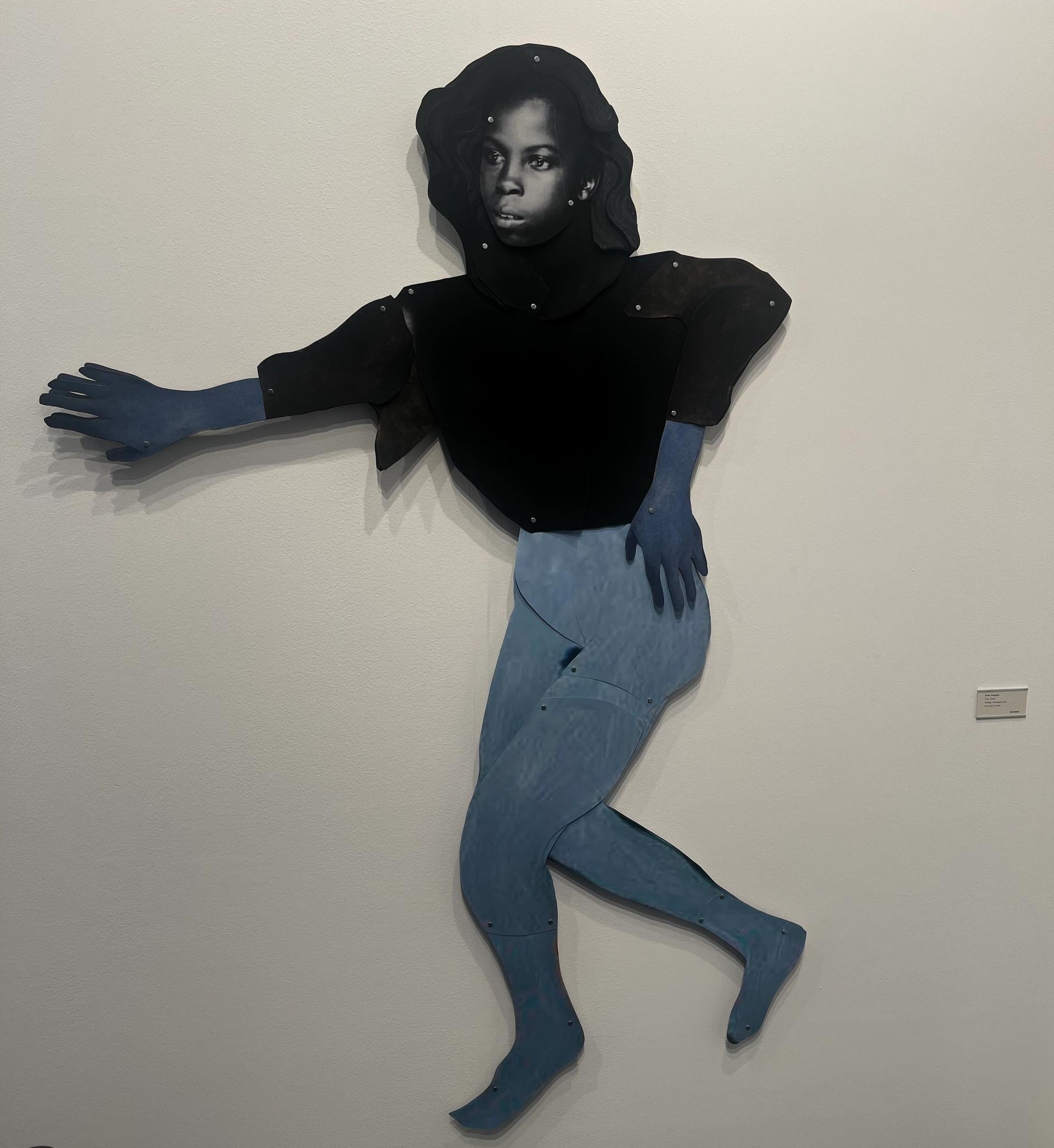 After the tour, I roamed through the booths waiting to see what stood out to me. My daughter was fascinated by Anish Kapoor’s vanta black mirror and we stood for several minutes in front of that. I was also drawn to a Frida Orupabo collage, titled You. She had assembled a lithe human figure from paper and pins. It was both graceful and fragile, like the human body.