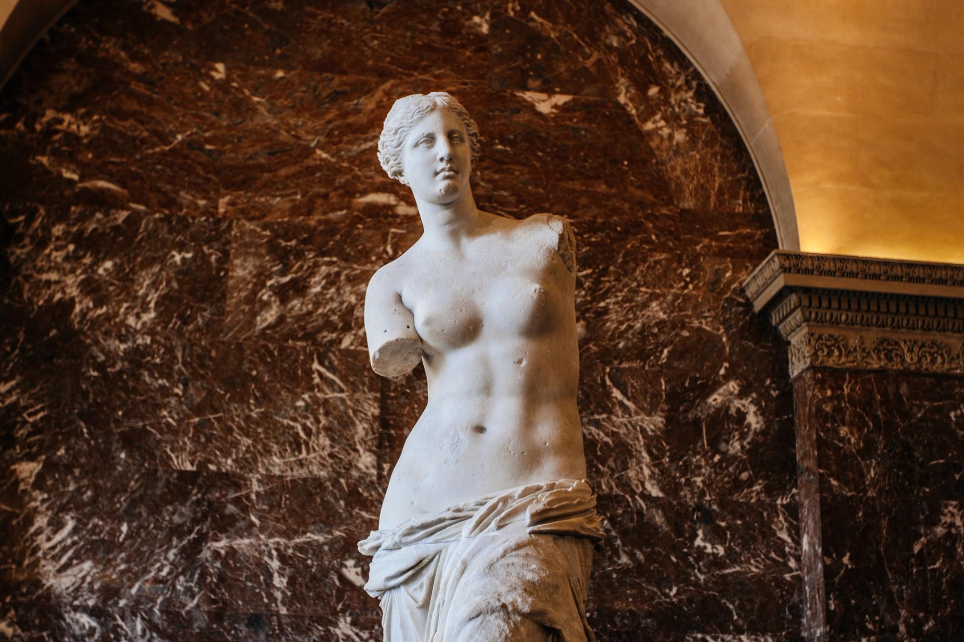 Discovered by a farmer on the Greek island of Melos in 1820, this beauty, rendered armless at some point in the last few millennia, is believed to be the goddess Aphrodite. The statue was presented to King Louis XVIII, who then donated it to the Louvre. At the time, restorers considered adding back the arms, and their decision not to do so can now be considered an ingenious branding exercise. Without its arms, the statue’s face and torso are emphasised in such a compelling and distinctive way that it quickly became one of the Louvre's leading attractions—and, in retrospect, a proto-Modernist icon.