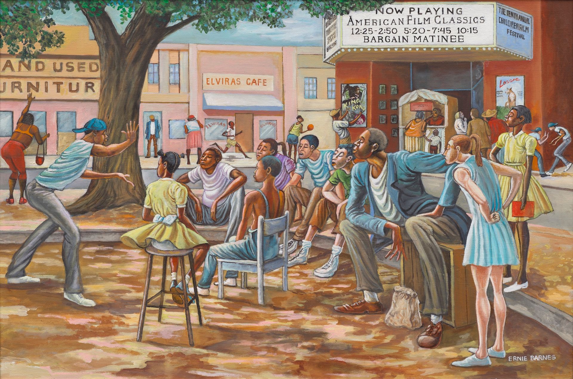 Ernie Barnes, The Critic’s Corner, 2007 Lucas Museum of Narrative Art, Los Angeles. Ernie Barnes Family Trust