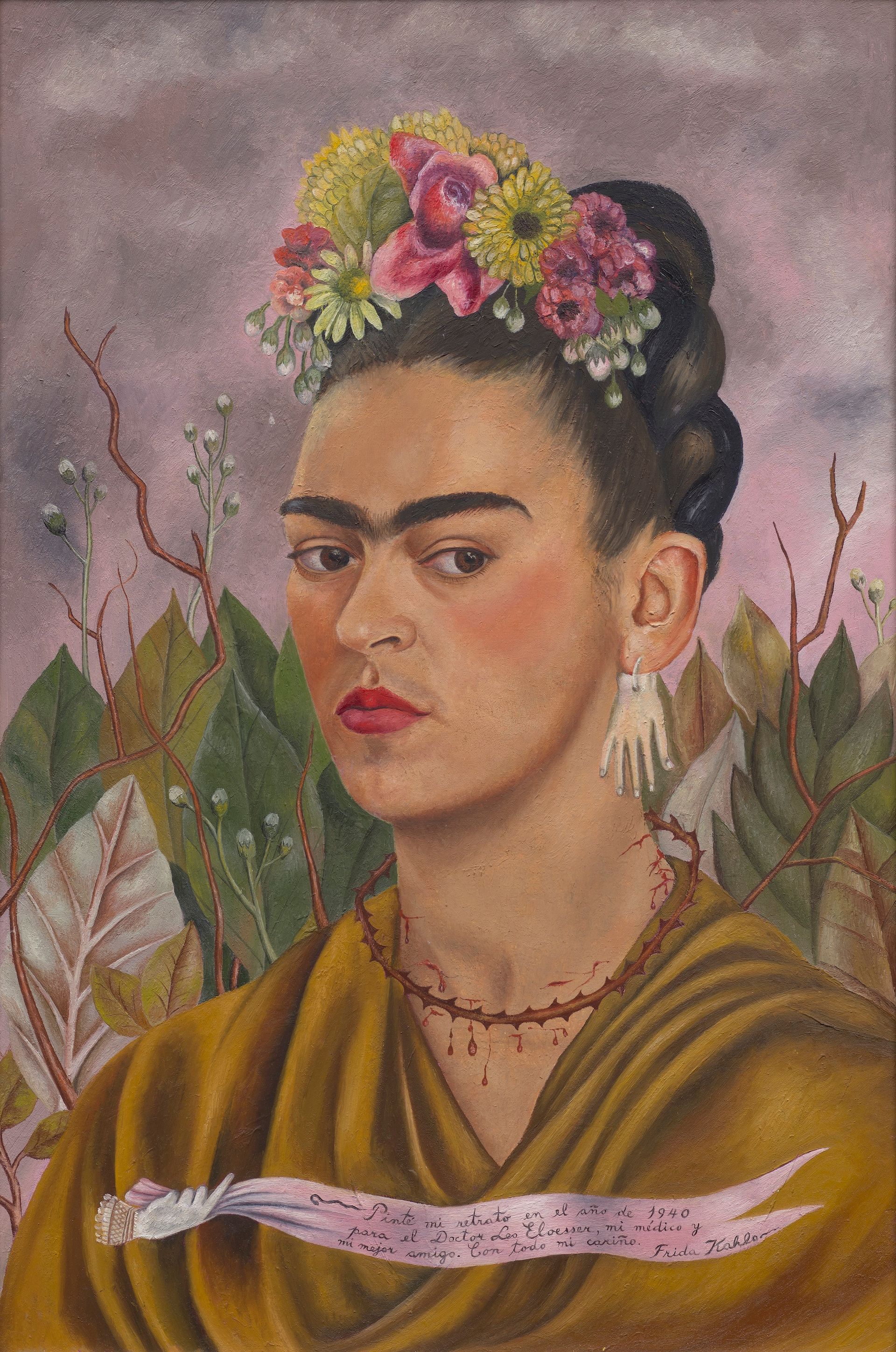 Frida Kahlo, Autorretrato dedicado al Dr. Eloesser (Self-portrait dedicated to Dr Eloesser), 1940 Lucas Museum of Narrative Art, Los Angeles. © 2025 Banco de México Diego Rivera Frida Kahlo Museums Trust, Mexico, CDMX / Artists Rights Society (ARS), New York