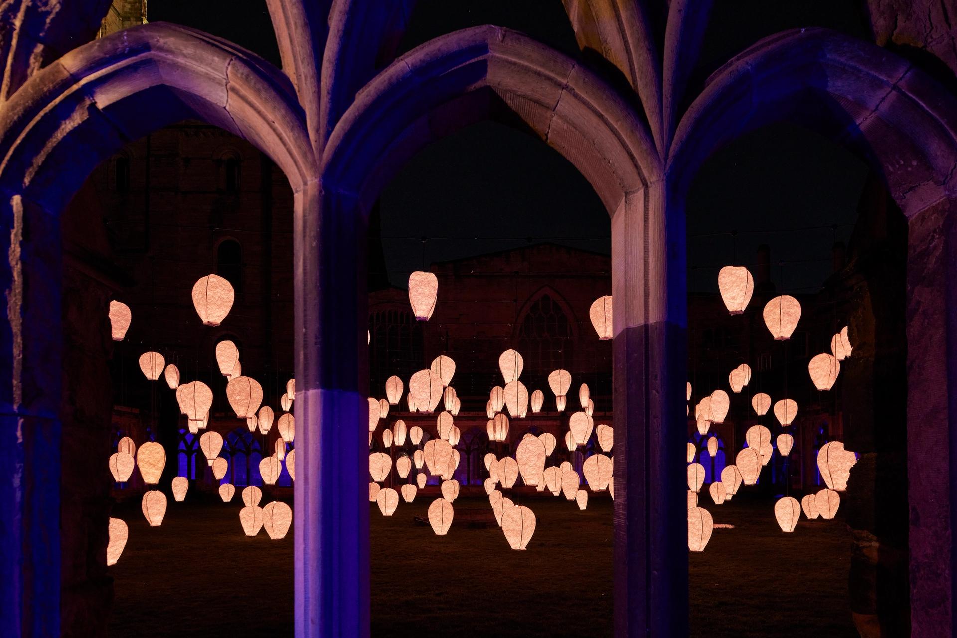 A field of blazing flowers bloomed in front of Durham cathedral, a net of pulsing green light arched over the market place, and the traffic control signs were warning of global warming and mass extinctions. Farewell to Arctic ice and the Queenwood shrub frog, they read, and they might have read farewell to Lumiere. For three nights and one last time, the much admired—and imitated—Lumiere festival is bringing joy, crowds and international light artists to the dark winter streets.