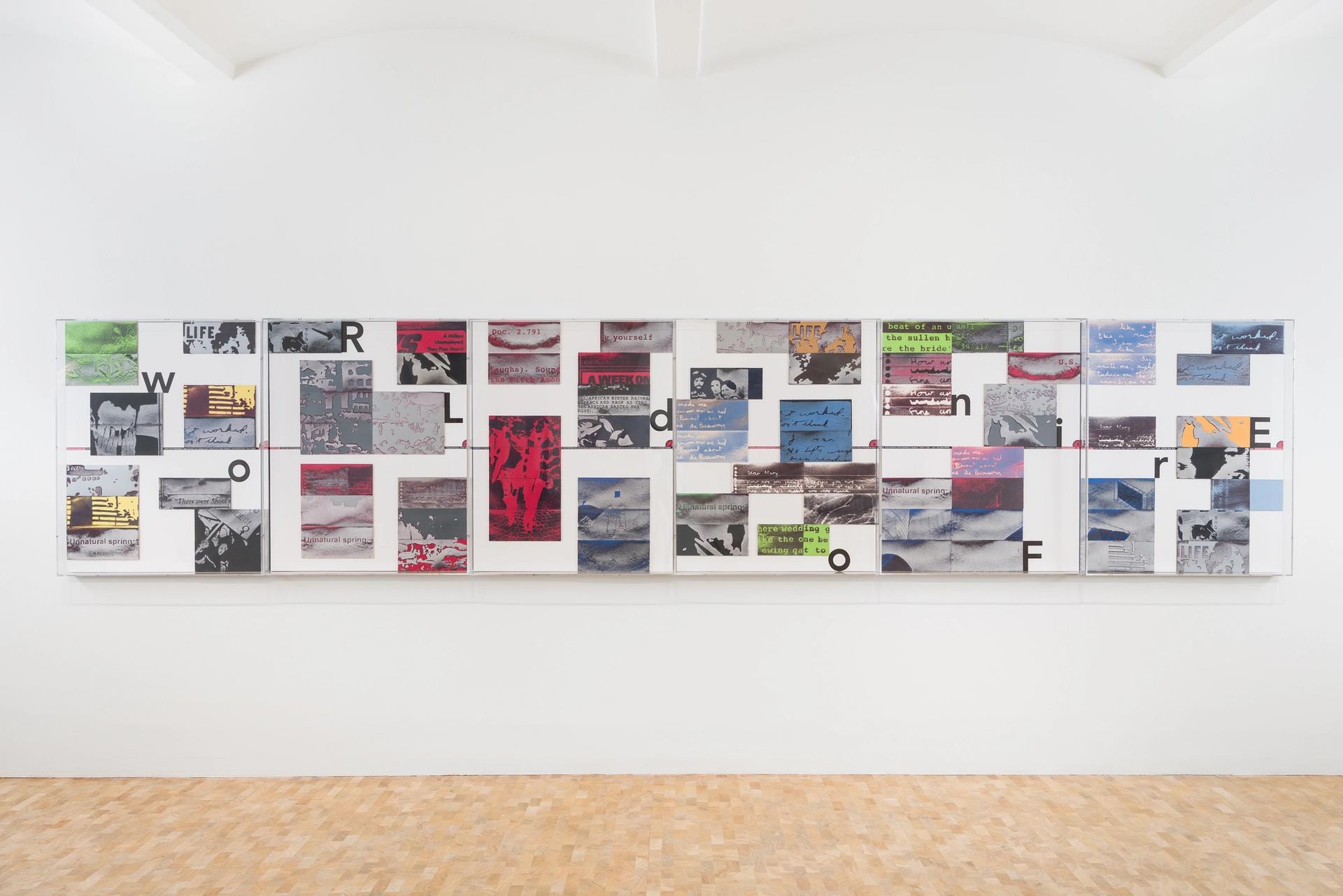 Installation view of Mary Kelly's We don't want to set the world on fire at Pippy Houldsworth Gallery, London, 2025 Courtesy the artist and Pippy Houldsworth Gallery, London. Photo: Mark Blower