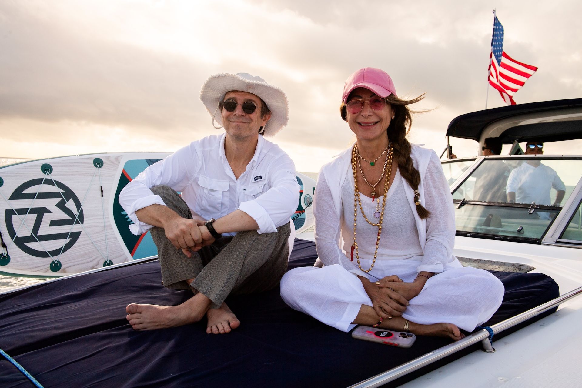 The artist Leandro Erlich (left) with the Reefline founder Ximena Caminos during one of the deployments to send sculptures to the sea floor Photo: Veronica Ruiz