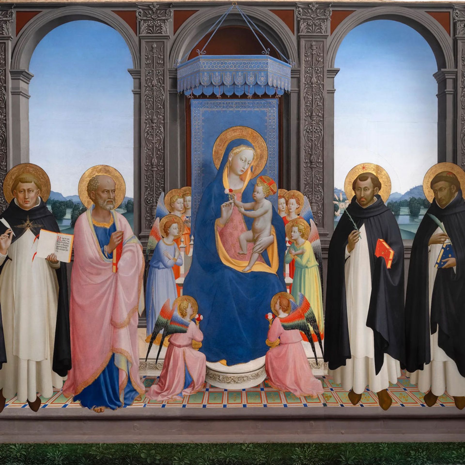 Four years in the making and featuring unprecedented loans from more than 70 museums and 28 newly conserved works, this major exhibition sets out to present the most complete picture of Fra Angelico to date, while challenging the notion that the artist was in any way archaic. It is a collaboration between two venues, the Palazzo Strozzi and the Museo di San Marco, which are about 15 minutes’ walk away from one another. The Museo di San Marco, a former Dominican convent where Fra Angelico worked, is home to the artist’s celebrated frescoes, which adorn the monks’ cells and corridors of the dormitory, together with the chapter house and the cloister of Sant’Antonio.