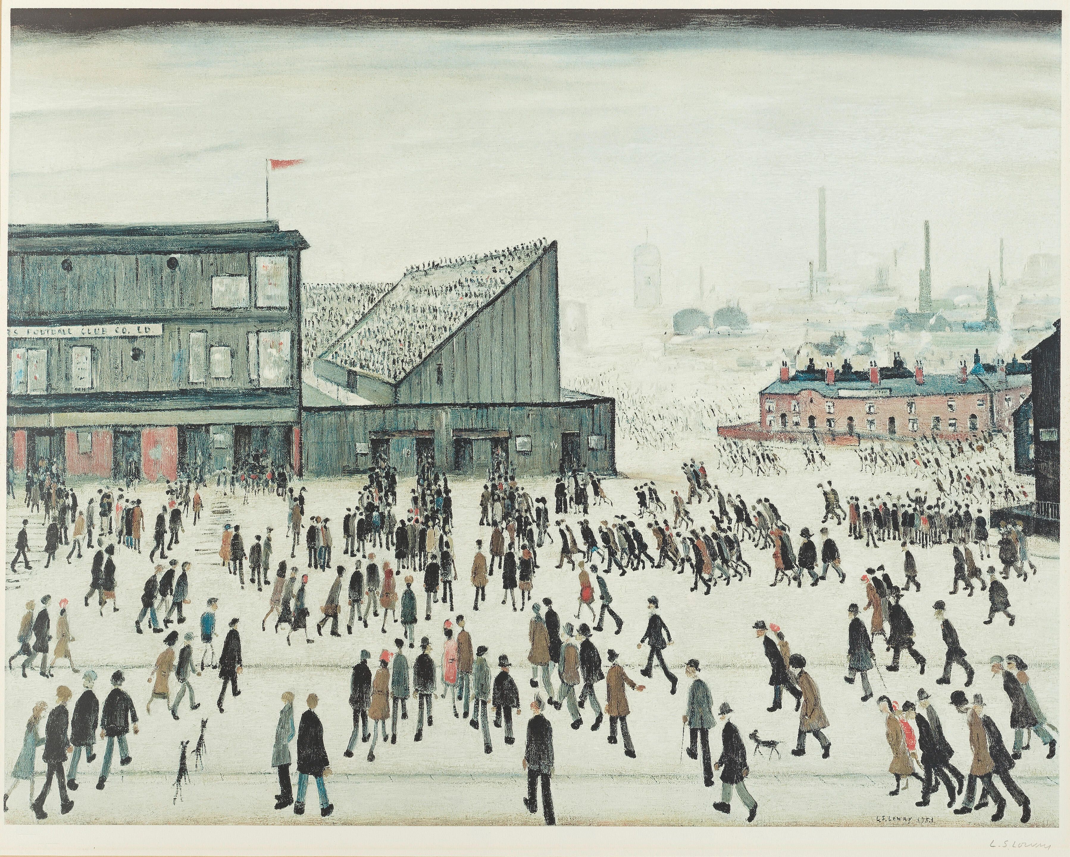This offset lithograph by L.S. Lowry, printed in 1972 and signed in pencil, comes to auction at Bonhams. From an edition of 300, Going to the Match shows one of Lowry’s most familiar scenes, a crowd streaming toward a football ground. It offers collectors a rare chance to acquire an image closely related to Going to the Match (1953), the painting that set Lowry’s auction record of £7.8m (with fees) at Christie’s in 2022. That work, now housed at The Lowry museum in Manchester, depicts fans approaching Burnden Park, the then home of Bolton Wanderers. Lowry’s quintessentially English works showed scenes of day-to-day life in the industrial north-west of England. Lowry turned down an offer of knighthood in 1968, saying: “All my life I have felt most strongly against social distinction of any kind.”