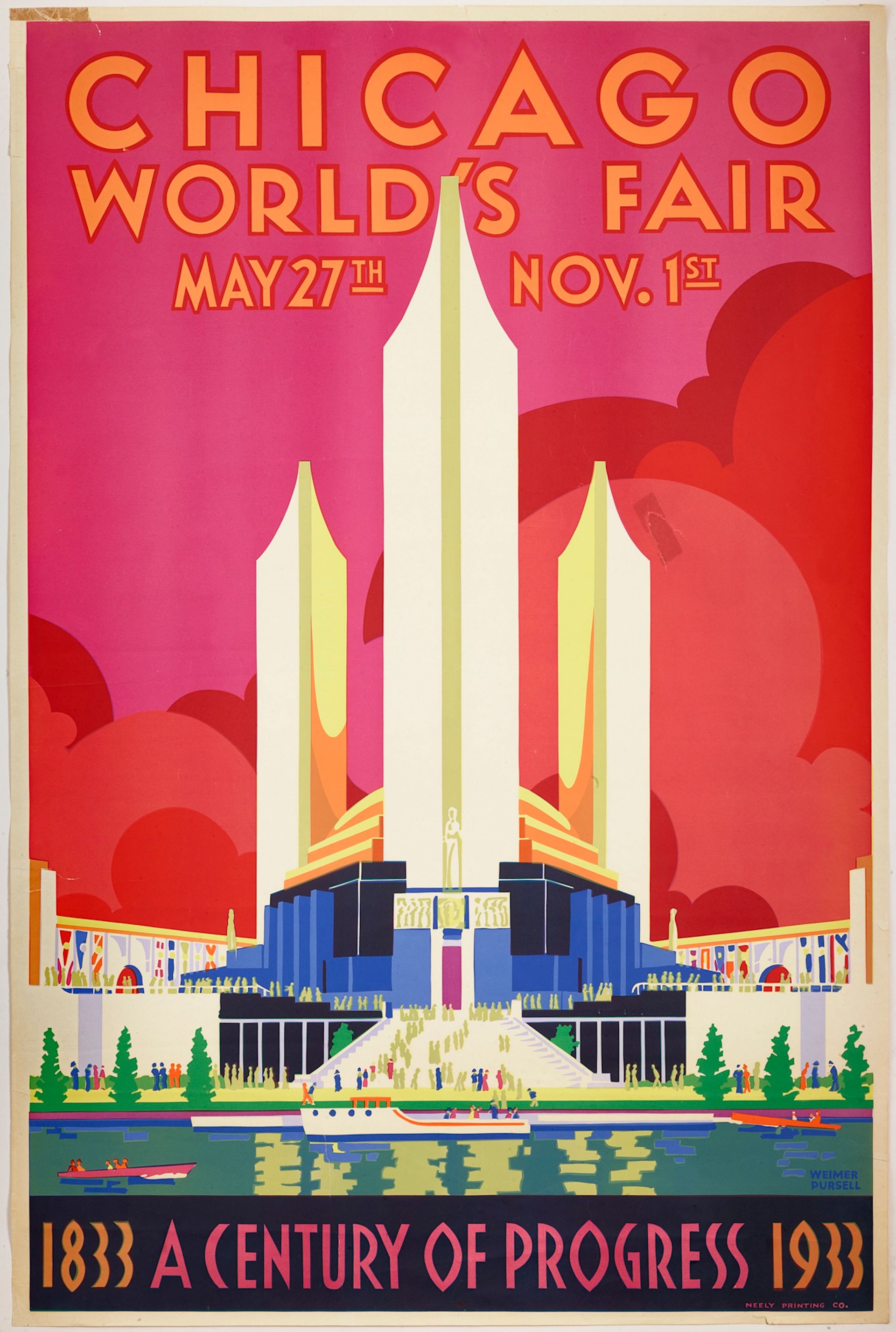 Chicago World’s Fair: A Century of Progress, 1833-1933, 1933, Weimer Pursell (designer), Neely Printing Co, Chicago (printer) The Wolfsonian–FIU, The Mitchell Wolfson, Jr Collection,
