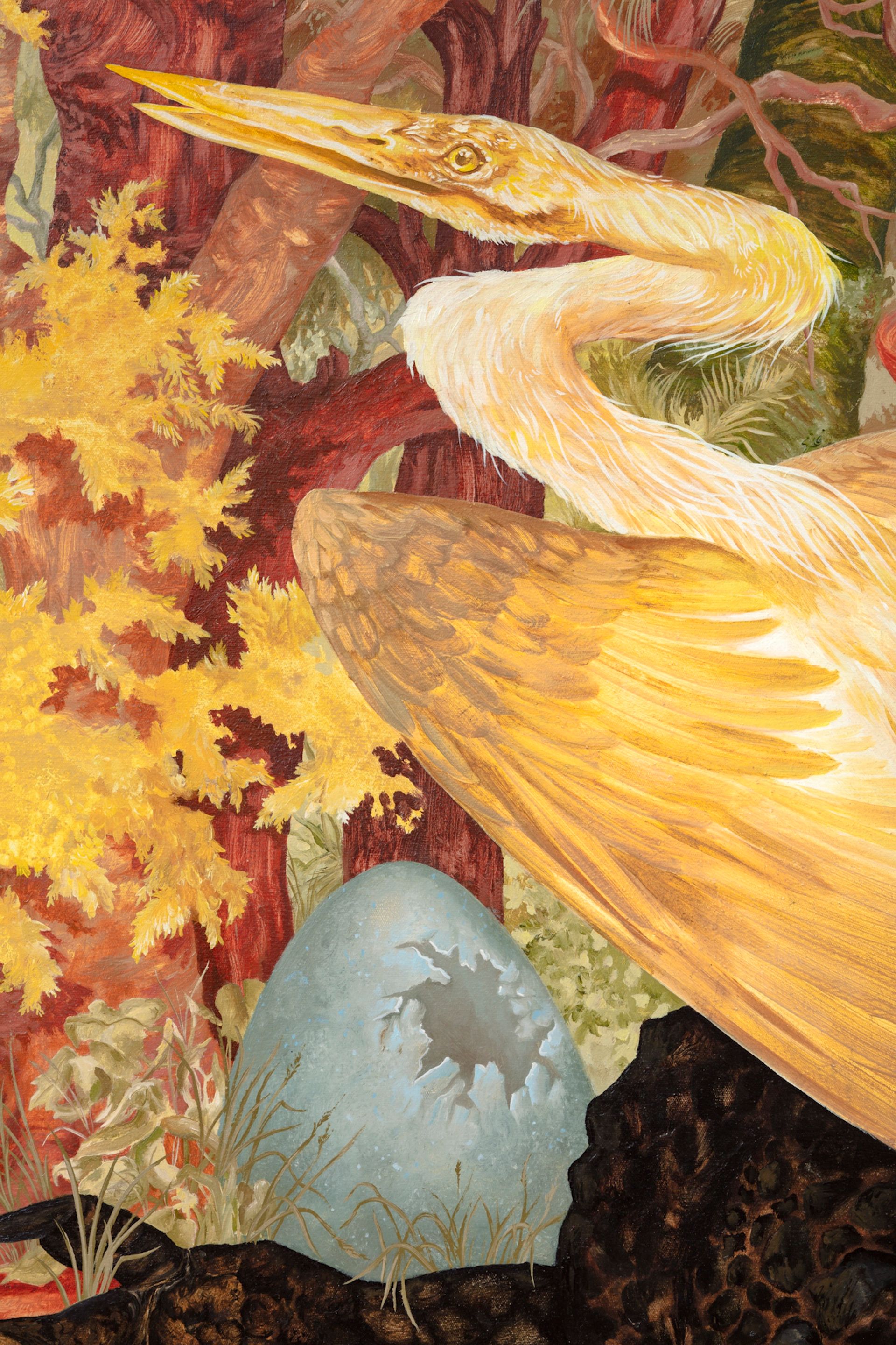 One hour’s drive from the air-conditioned Miami Beach Convention Center lies Everglades National Park, a vast protected ecosystem of 6,105 sq. km—roughly the size of Devon in south-west England. These two worlds collide in Kat Lyons’s Full Earth at Marquez Art Projects (MAP) in Miami Beach, the Kentucky-born painter’s first US institutional solo show. Lyons uses the Everglades’ past and present as scaffolding for large-scale oil paintings that unfold as part Leonora Carrington, part John James Audubon and part Frans Snyders.