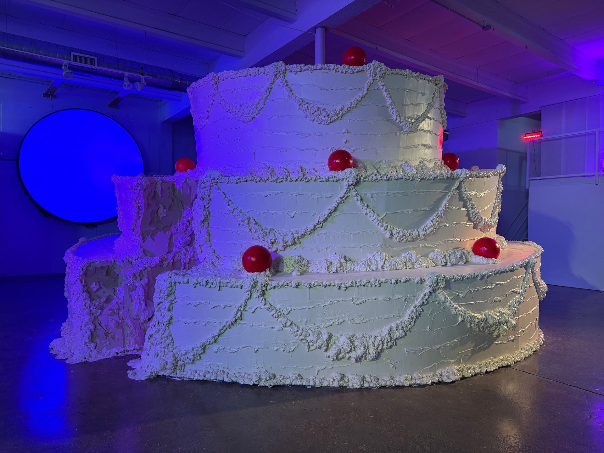 Tara Long's new installation La Esquinita (Little Corner) has taken over all three spaces at Locust Projects as well as the building’s exterior, transforming the gallery into a shop for sweets and souvenirs—with more than 500 miniature sculptures for sale. The immersive environment, marking Long's first major solo show, unfolds in three acts: seduction, exposure and collapse. Each act gestures towards cycles of extraction and survival in Long’s hometown of Miami. At the exhibition’s centre stands a crumbling frosted cake the size of a room, both a spectacle and a warning.