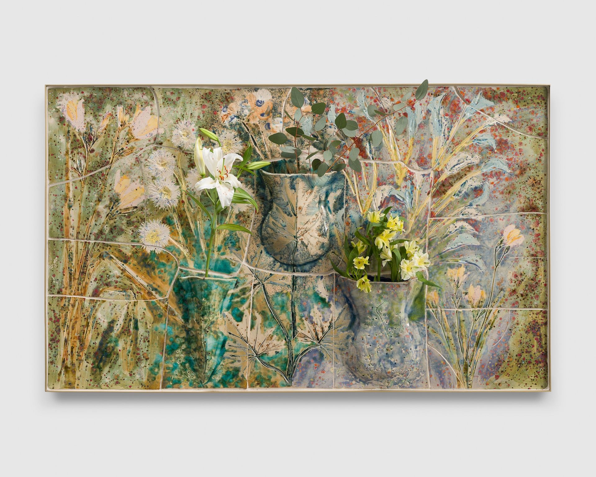 The best example of this is, I’ve started making these pieces with 4x5 Polaroid film when I started planting gardens. In the beginning, the flowers I planted, when they would finally bloom in the spring, there would be one day of pure enjoyment, and the next day I'd be like: “Oh, my God, they’re gonna die.” It was so crazy to have these beautiful flowers and then to be checking on them. Are they doing OK? What’s going to happen? I started taking Polaroids of them in full bloom. And then when they would die, I cut the dead flower and rolled it into clay and made a picture frame with the ceramic of this kind of fossilised, life-size flower, and then put the Polaroid in it. So you have the height of life and then its memorial connected together. It mimics so much the experience of having children, where there’s this pure beauty of life, but then when I had kids was really when I started being afraid of death. All of a sudden I became severely healthier and worried about my longevity, just to experience their life longer. That’s something I think about making art: how can I capture that feeling?