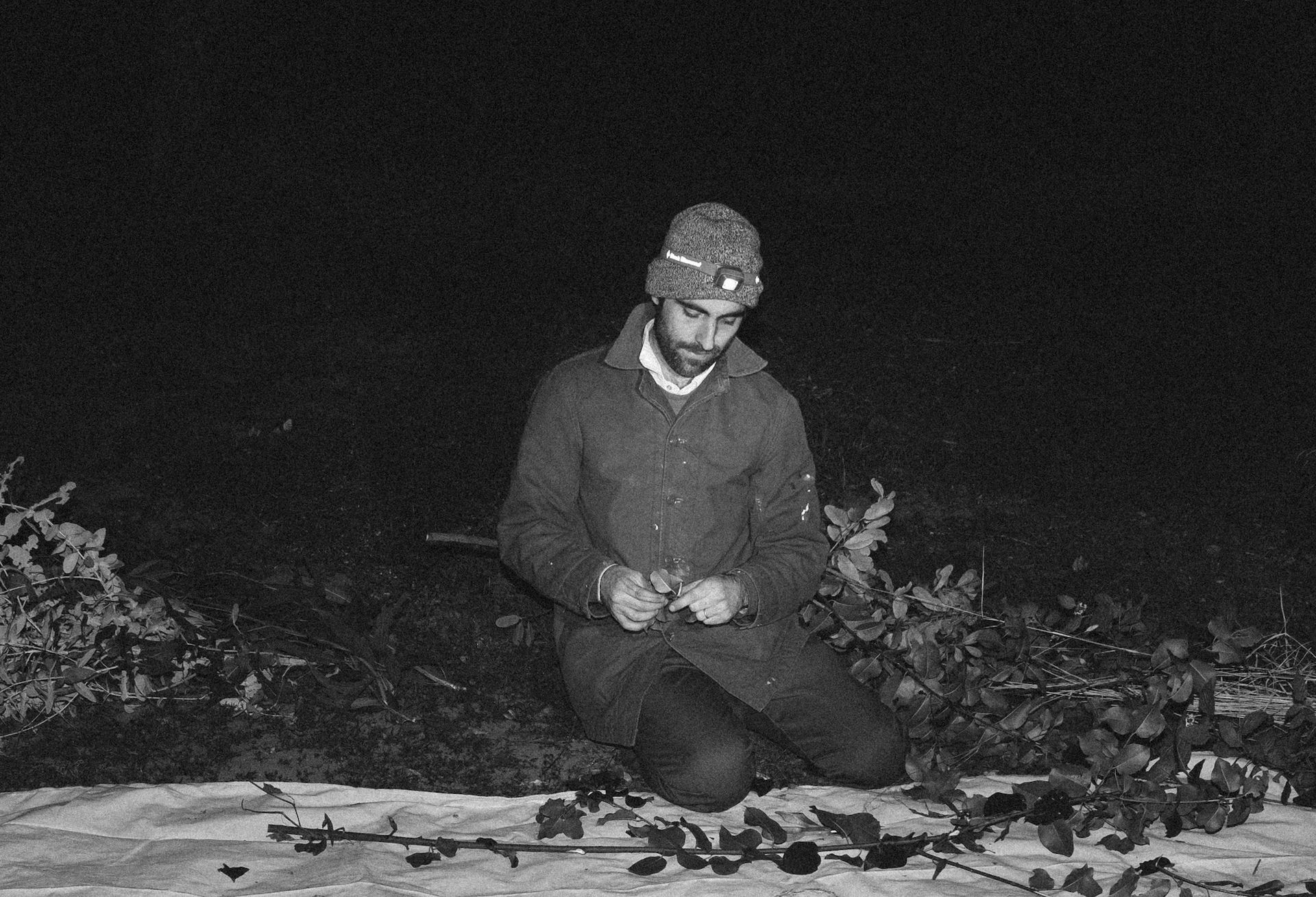 The artist Sam Falls working in nature Portrait by Tin Ojeda