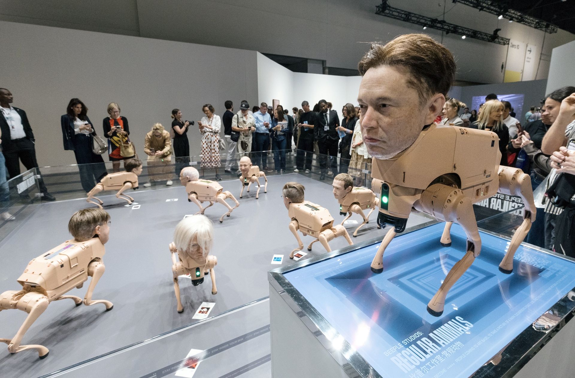 The digital artist Mike Winkelmann, better known as Beeple, is causing a stir at Art Basel Miami Beach with his work Regular Animals (2025). The installation, on show in the new Zero 10 digital art section, features robotic canines fitted with hyper-realistic heads resembling tech moguls such as the Tesla chief executive Elon Musk, Amazon founder Jeff Bezos and Meta chief executive Mark Zuckerberg.
