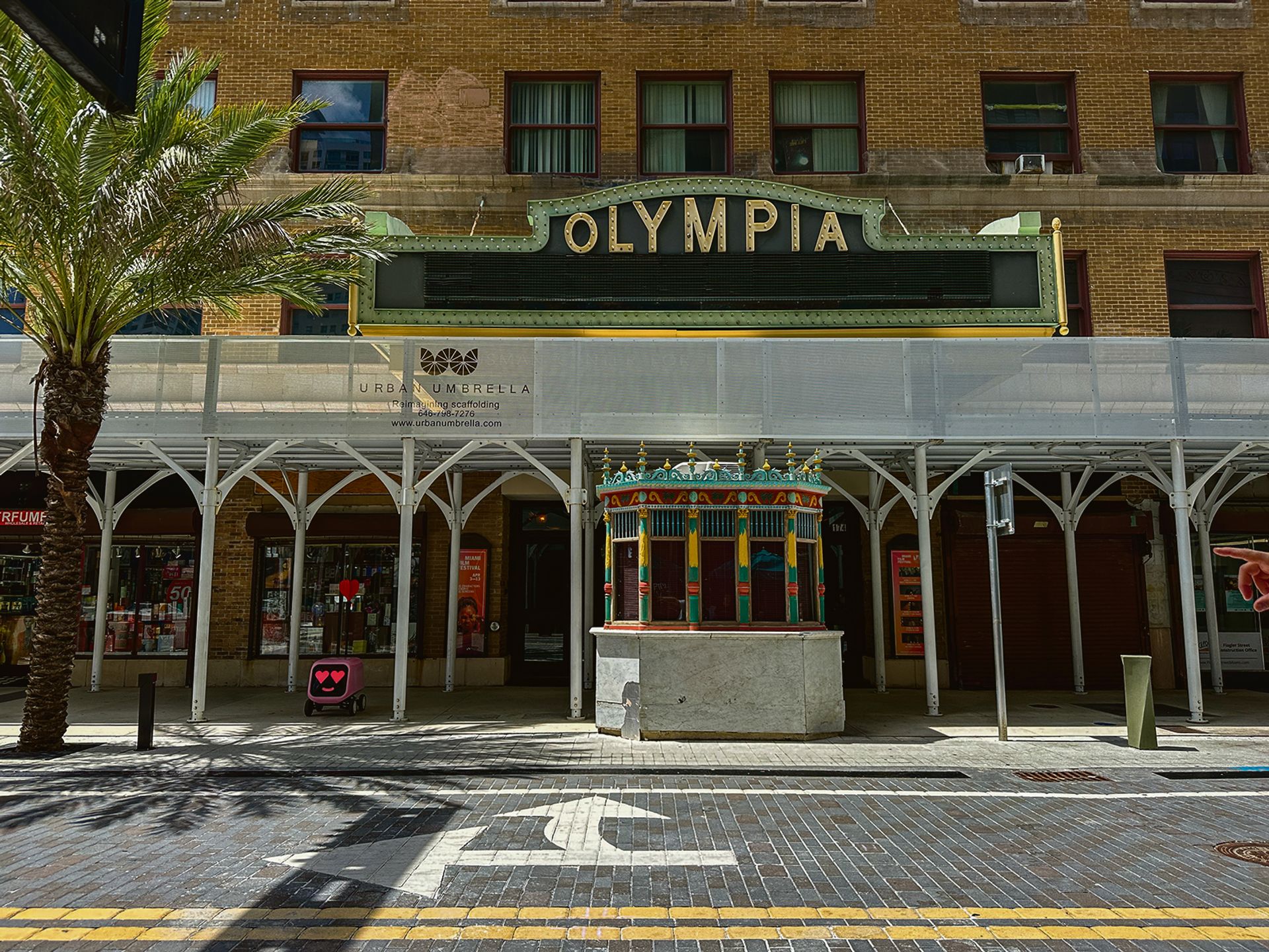 The Olympia Theater was built with an interior designed to make audiences feel like they were in a Spanish garden; it is now in a poor state of repair