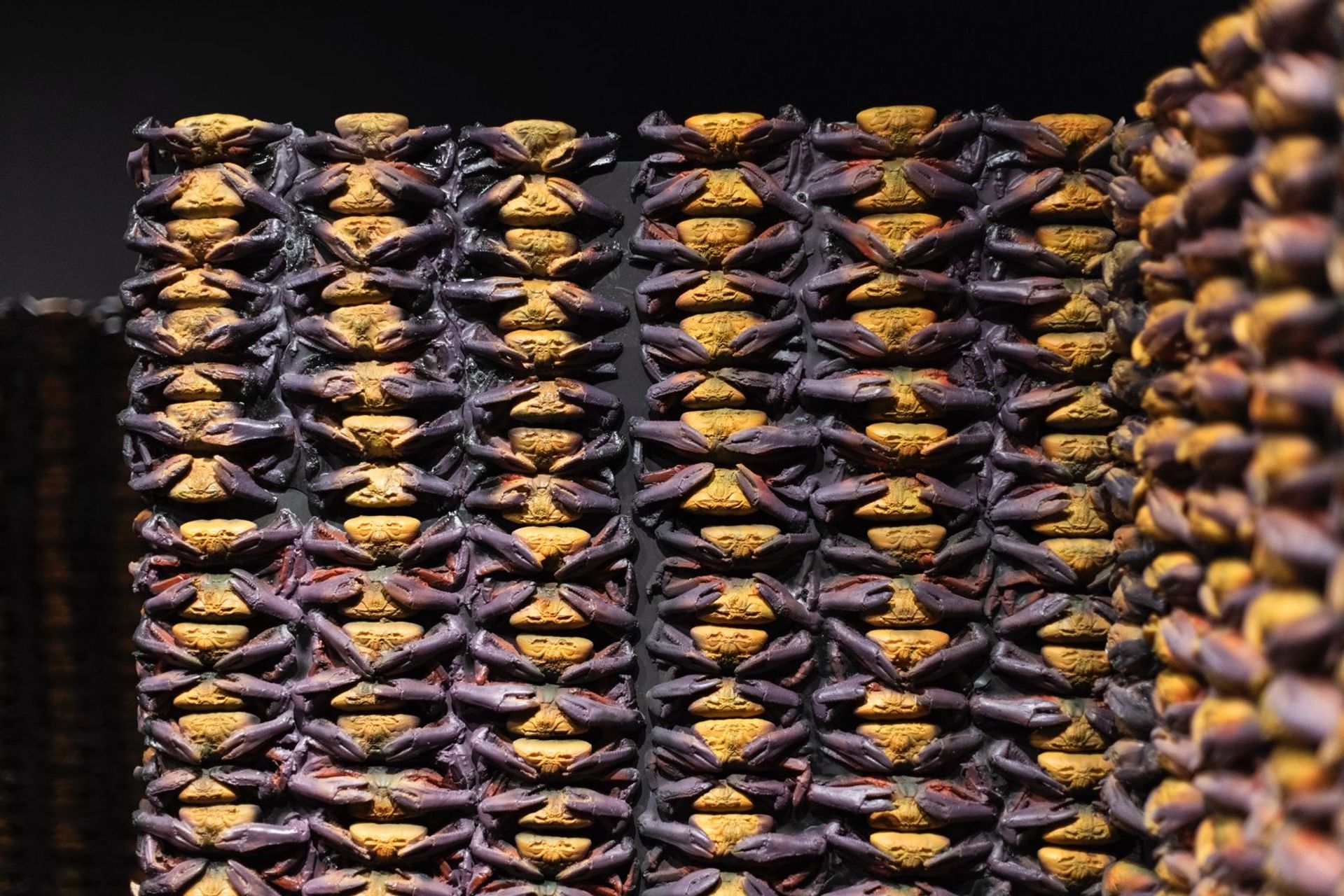 While Mosquera’s poetic exhibition emphasises reflection, Roy approached The Game through active engagement, creating a space for autonomy and negotiation while critiquing institutional control. Roy’s presentation, lo lúdico como potencia política (play as a political force), invites viewers to navigate a painstakingly made labyrinth of 26,000 resin-cast crabs constructed by the Ecuadorian artist Darwin Guerrero.