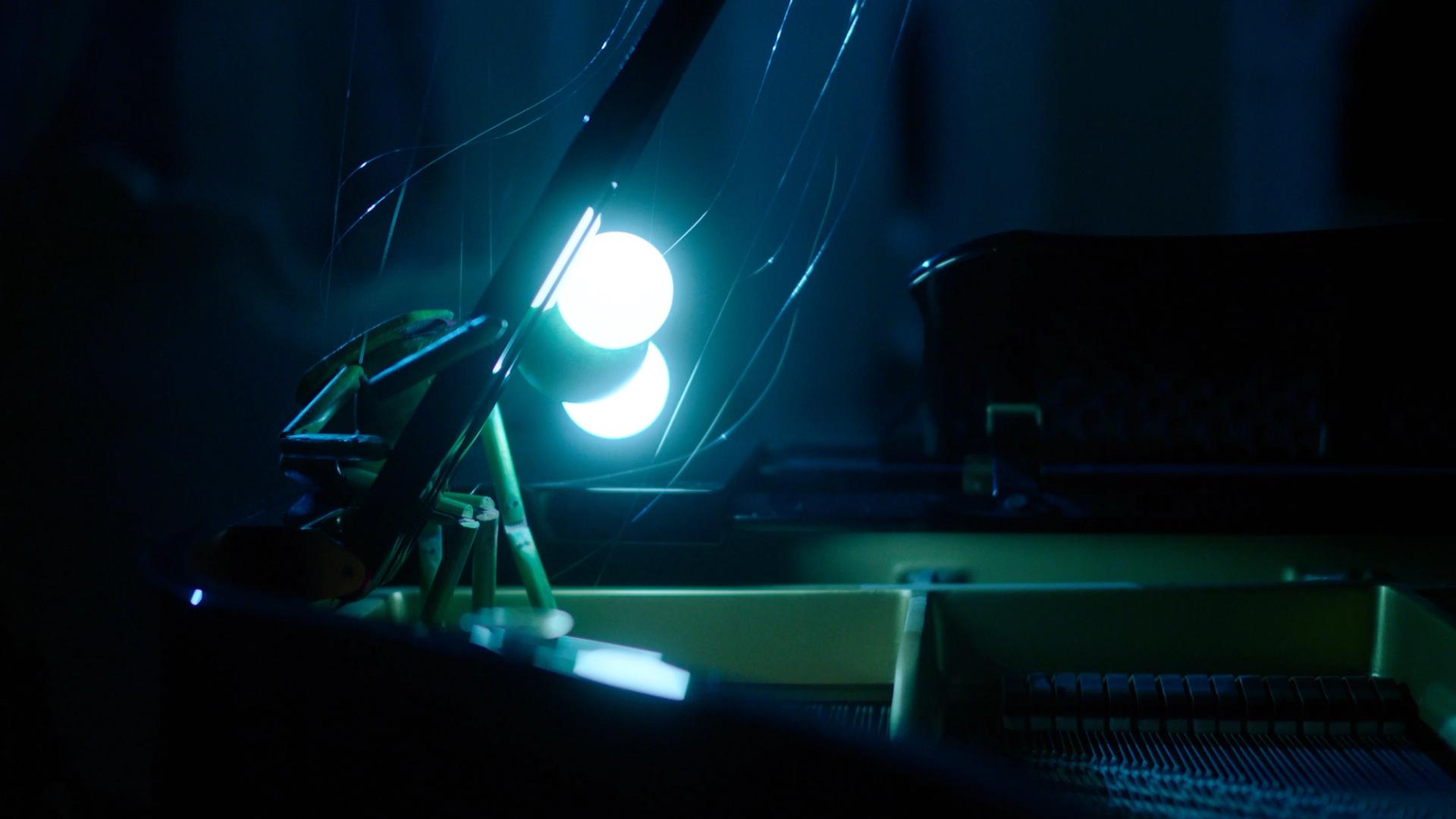 In Arash Nassiri’s new moving-image commission, an insect puppet drags itself across an empty marble floor, cast in eerie blue evening light. The scene is diffused through an enormous frosted-glass cubicle, refracting and distorting the images.