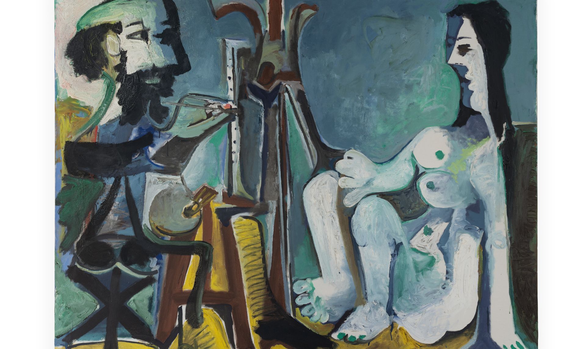Pablo Picasso's Le Peintre et son modèle (The painter and his model), 1963, oil on canvas. ©2026 Estate of Pablo Picasso / Artists Rights Society (ARS), New York.
