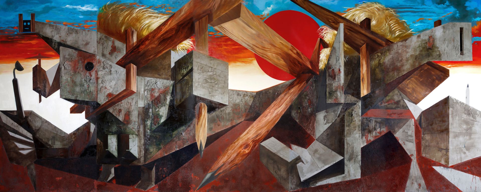 Néstor Jiménez’s La yunta (2025), made of concrete and oil on plywood Courtesy of the artist and Proyectos Monclova Gallery